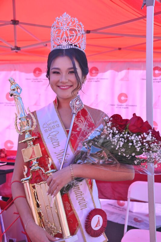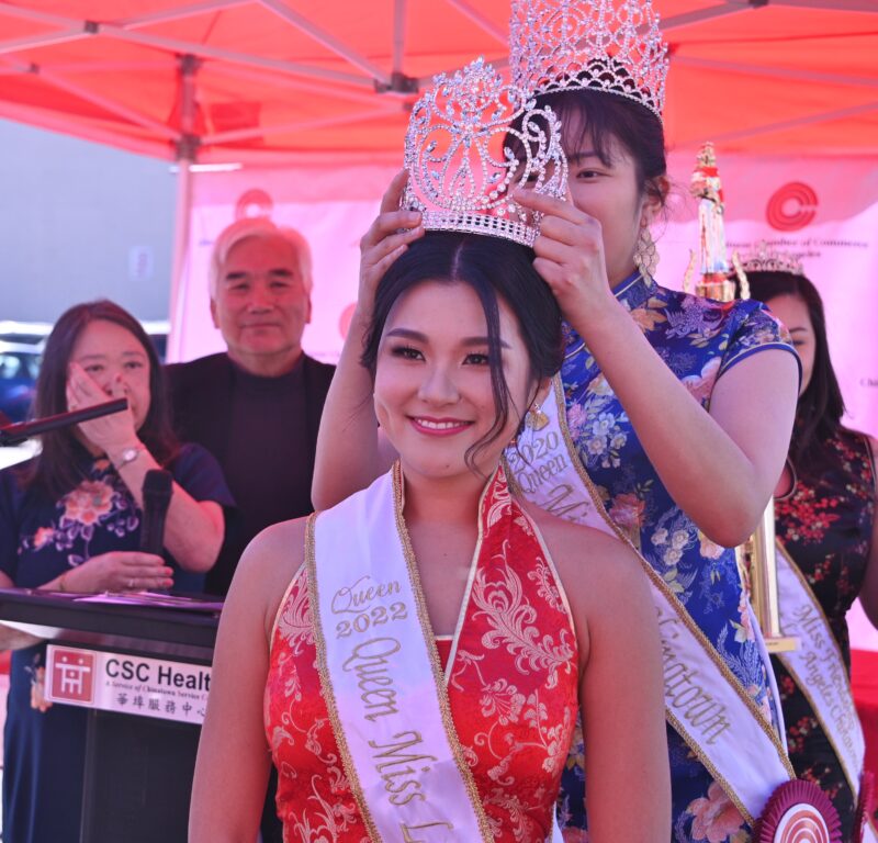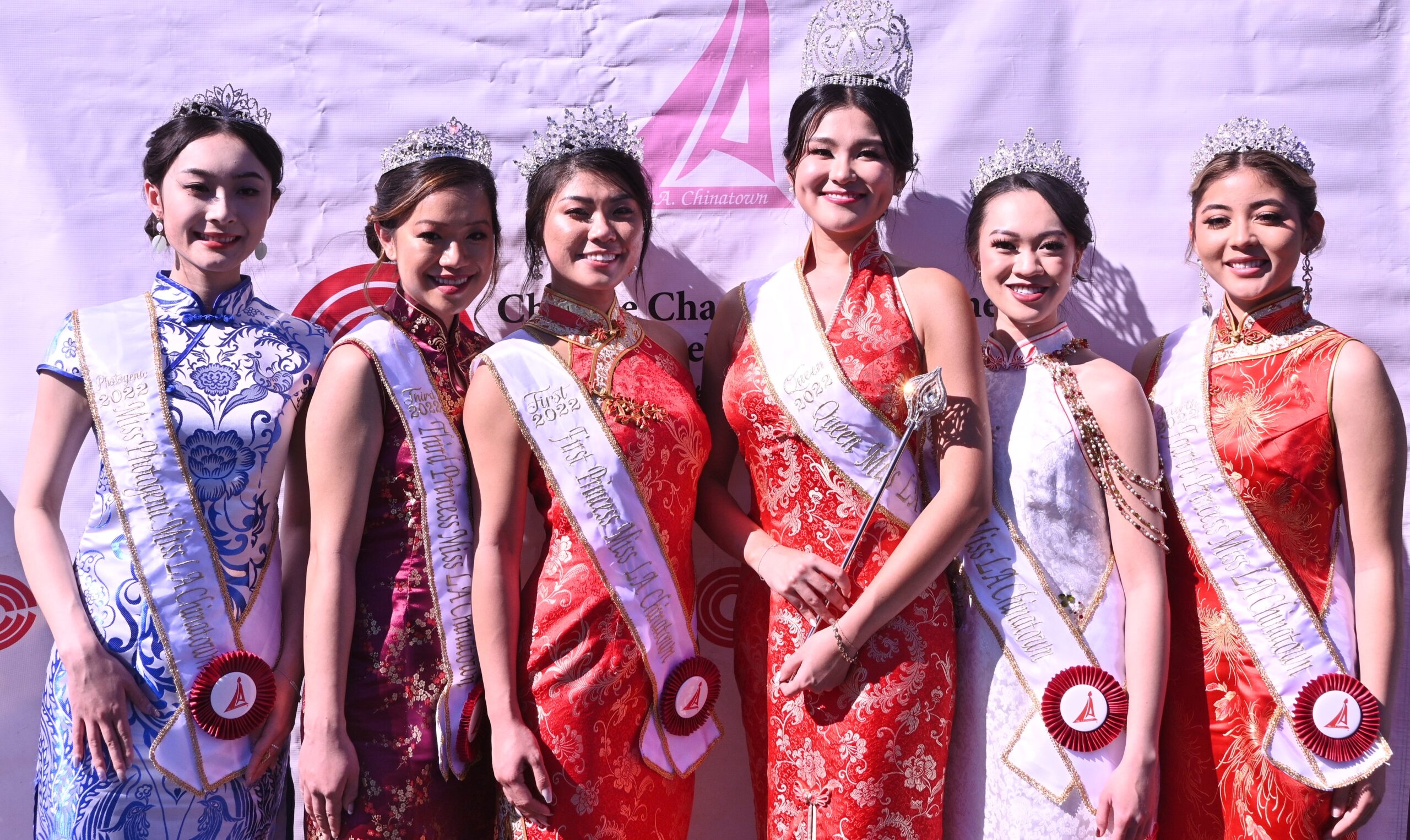 城市新闻2月5日洛杉矶报道,洛杉矶(罗省)中华总商会第 56 年度华埠小姐选举之「华埠小姐皇后公主团队」加冕典礼 (2022 The Coronation Ceremony of the 2022 Miss LosAngeles Chinatown Court)在华埠国泰银行 (Cathay Bank) 广场举行,新出炉的六位皇后公主:皇后吴乔西(Chelsea Wu)、第一公主徐贵颖(Wendy Tu) 、第二公主韩淑如( Shuru Han) 、第三公主金伯利(Kimberly Renee Low) 、第四公主美勤(Megan Anne Dalton Thompson)、「最上镜小姐」陈嘉淇(Selena Chen) 。(罗省)中华总商会会长陈嘉文、主席庄佩源出席致词祝贺。