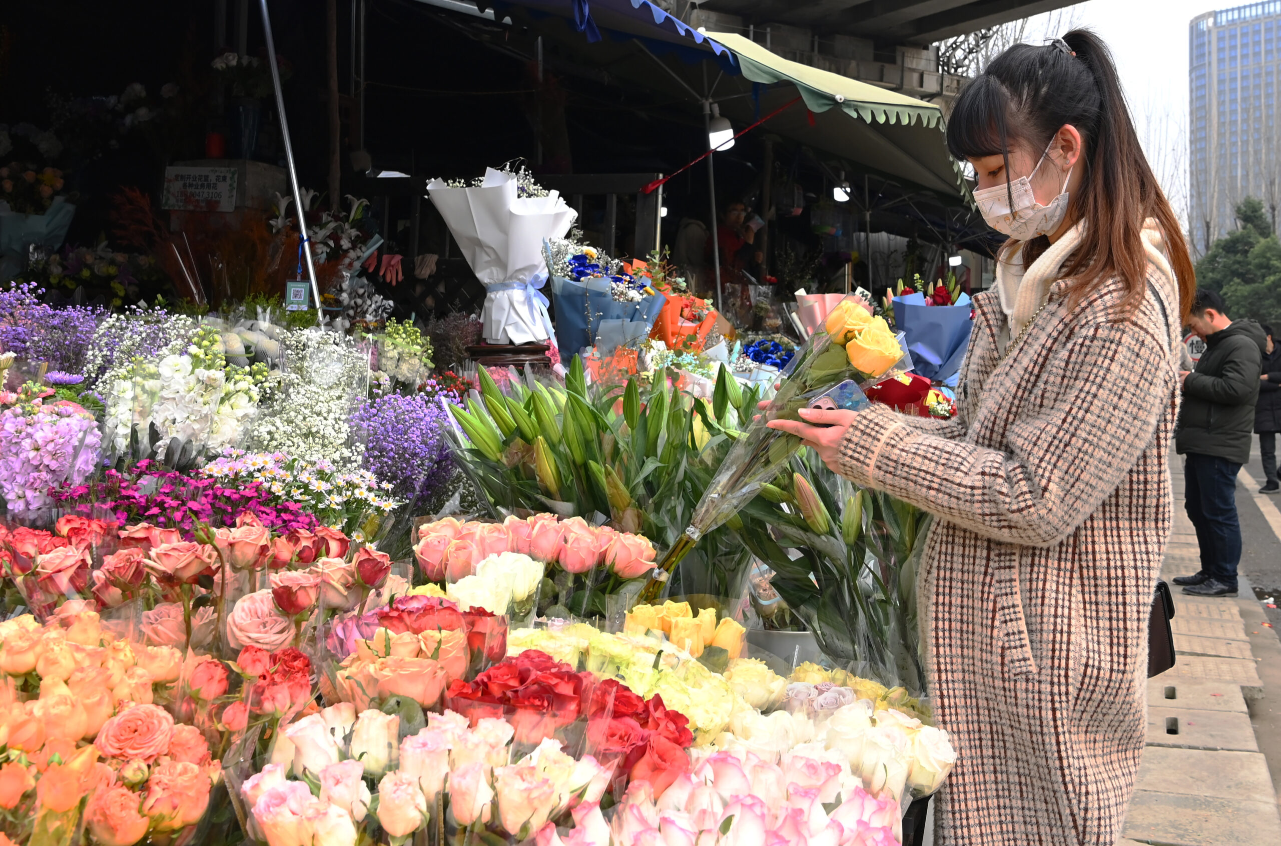 成都:市民选购鲜花