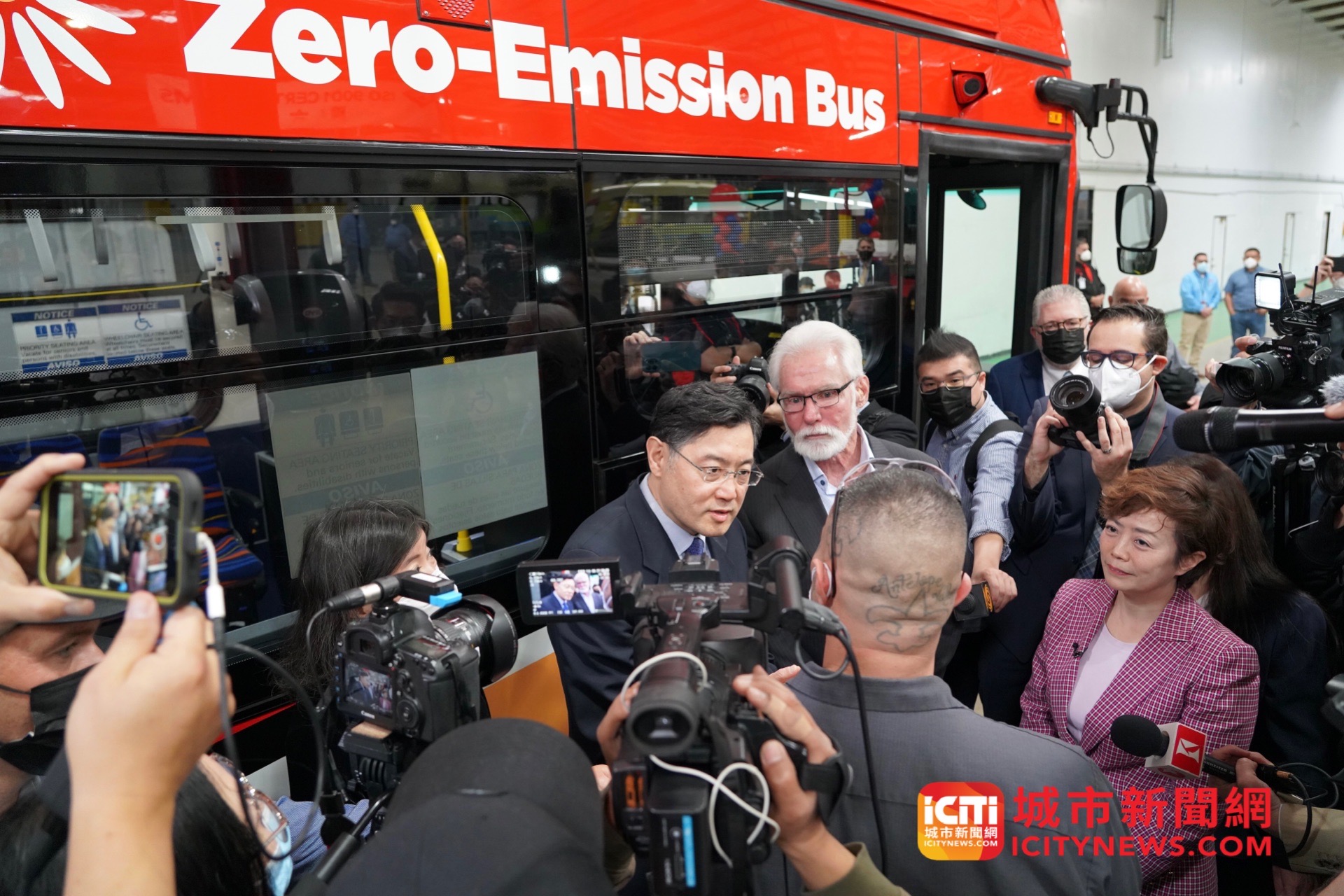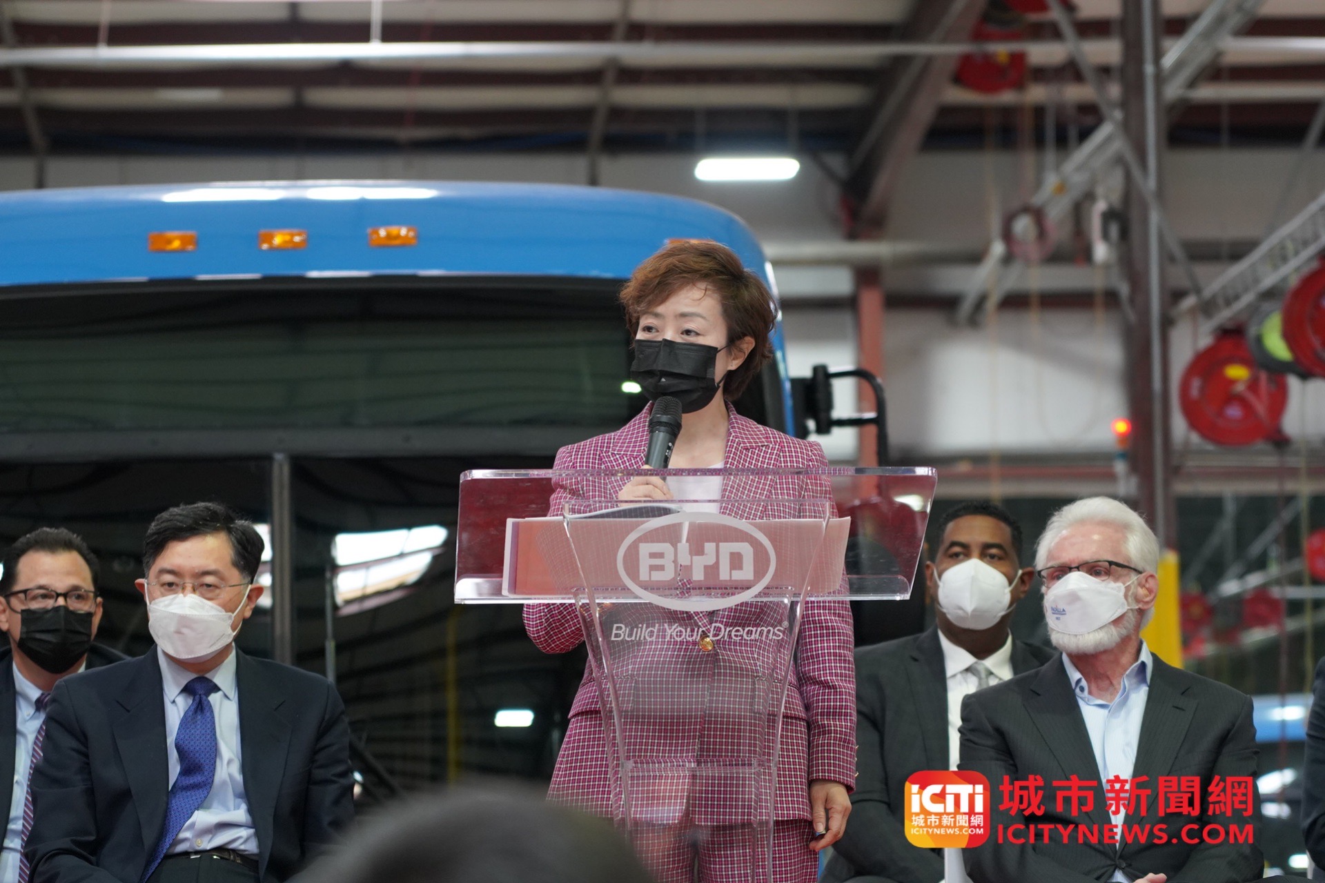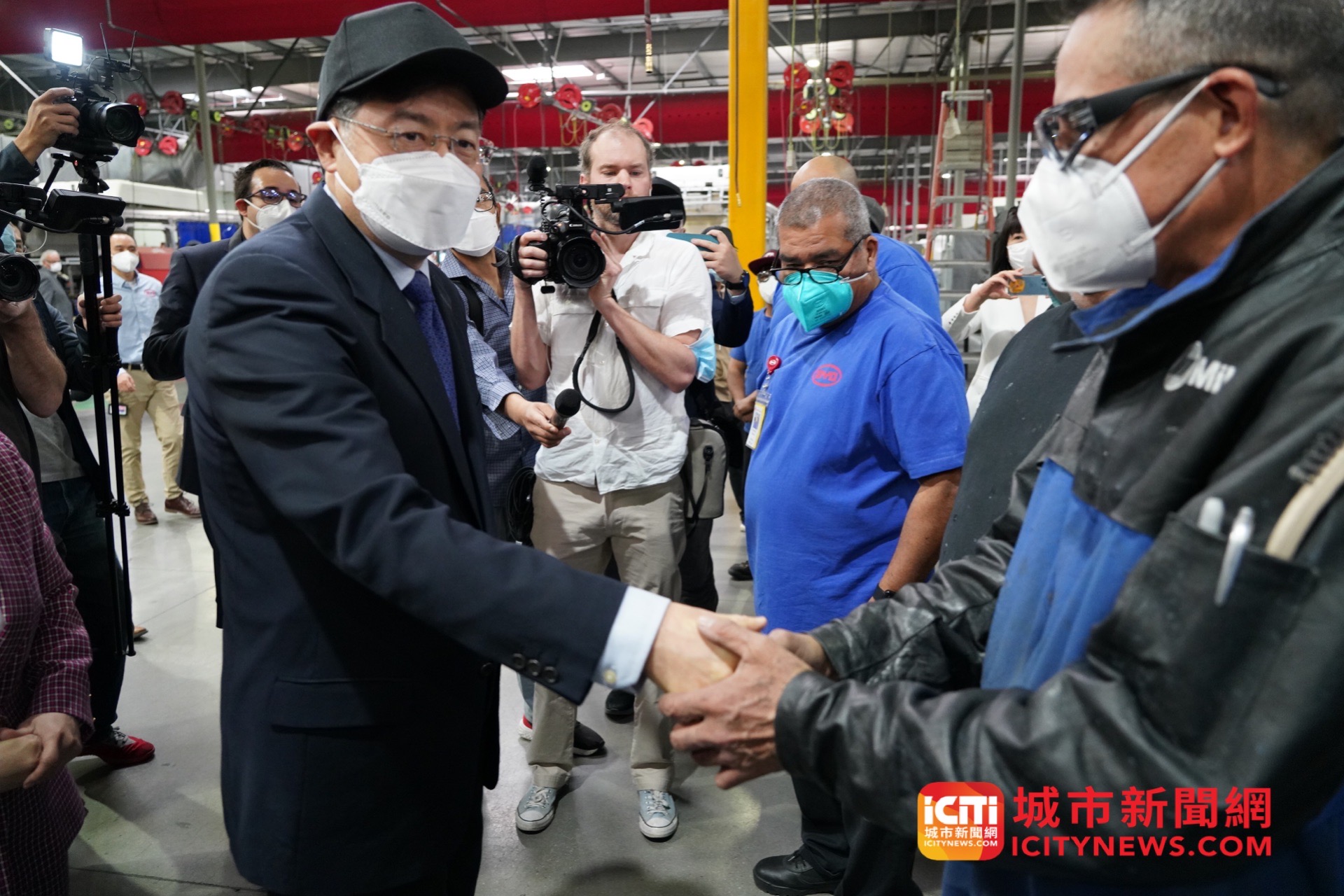日前,秦刚大使访问位于加利福尼亚州兰卡斯特市的比亚迪大巴工厂,并与兰卡斯特市市长帕里斯共同会见比亚迪全体工人。驻洛杉矶总领事张平陪同访问。