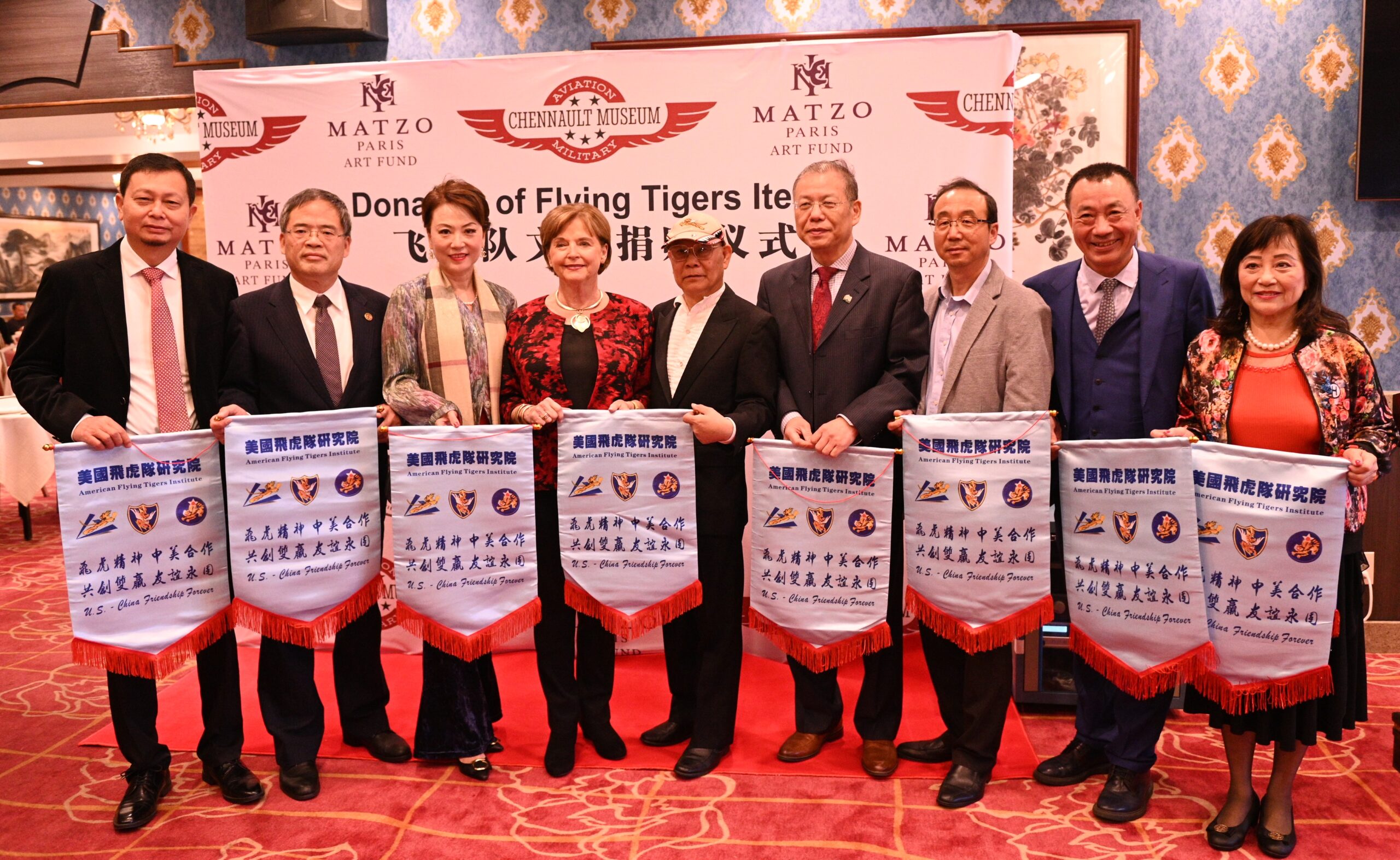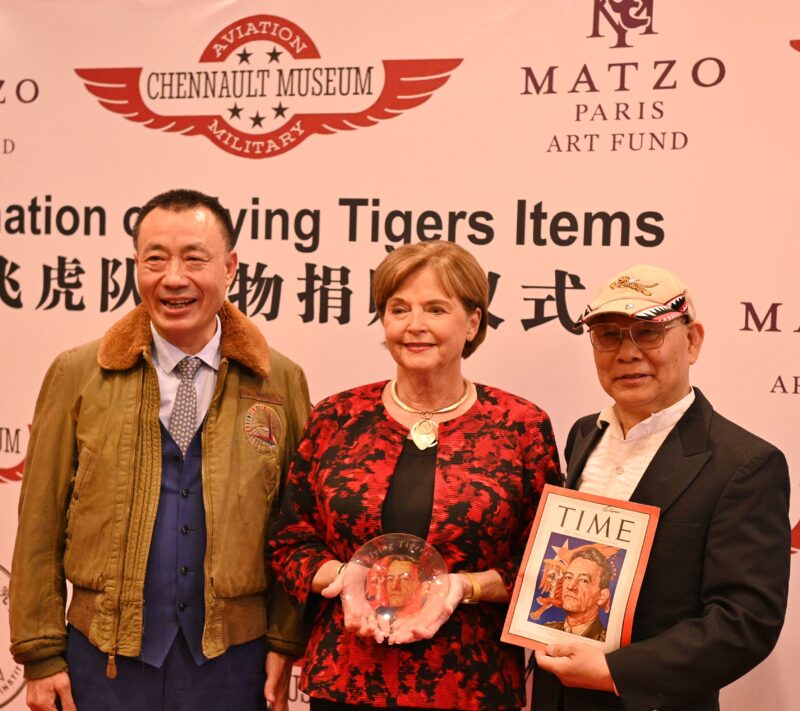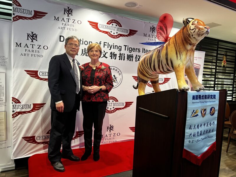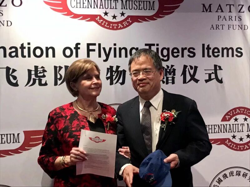 城市新闻3月9日阿罕布拉市报道,飞虎队文物捐赠仪式在上岛酒家举行,美国飞虎队研究院院长陈灿培向陈纳德将军航空与军事博物馆捐赠飞虎队文物和筹款5万美金,由飞虎队陈纳德将军孙女Nell Chennault Colloway接受。圣盖博市市长丁言喻、法国巴黎美爵艺术基金会主席刘子杰、陈纳德将军夫人陈香梅的外甥许绍理、飞虎队传播协会会长虞清、广东外语外贸大学洛杉矶校友会会长伦炳强、罗省萃胜工商会会长李美琴等20多人出席,美国华人专家会会长王希萌主持捐赠仪式。