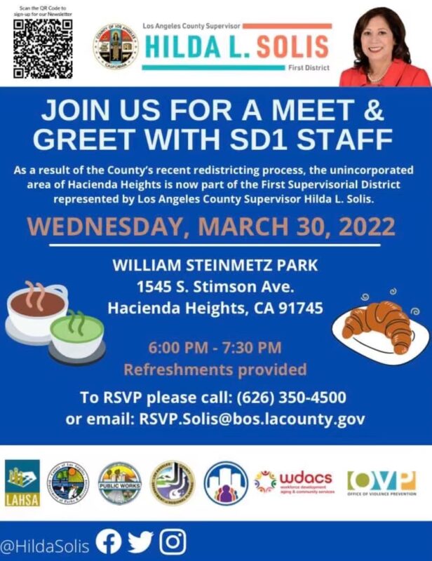 参加此次活动的华人团体有TACF(超过10人)、罗兰岗华人协会、罗兰岗教委Carey 陈、哈岗华协会长方孝伟律师、核桃学区教委佟仪等。TACF 积极参与社区事务,此次成为最大的社团参加活动,10位理事也踊跃参与。众人与县委Solis 的华裔幕僚长(Chief Staff) Cindy Chen 热烈讨论如何加强社区发展与展望。