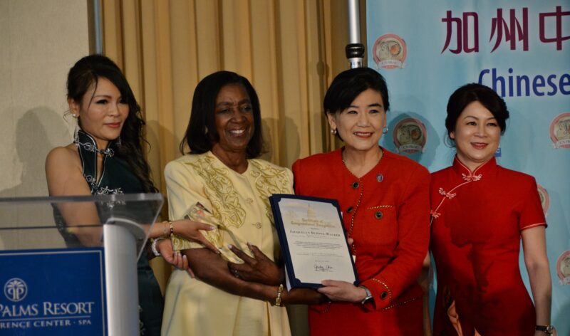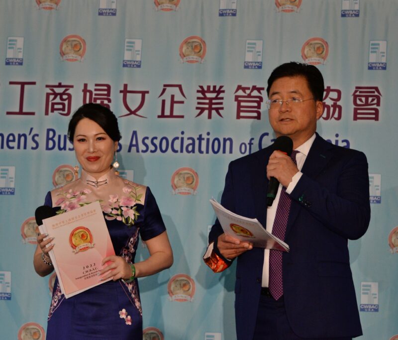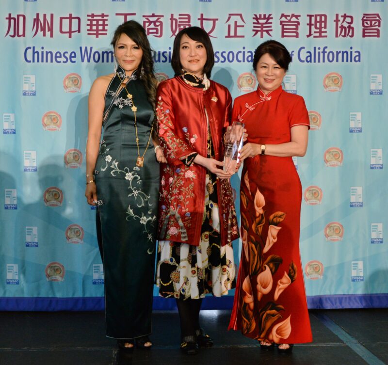 “荣誉会长奖”和 “荣誉理事长奖”颁发给了任菲比和李余妙玲。加州中华工商妇女企业管理协会每两年推出的 “毓秀奖” / “YuXiu Awards”,主要颁发给社区优秀人士和事业成功的企业家进行表彰。今年有9位 “毓秀奖” 得奖人:1) 杰出女性楷模奖: 加州财务长 马世云2) 杰出女企业家奖: Golden House Industrial Co. / CEO 李妲3) 杰出男企业家奖: Chairman of JASH(Group Nine Media family) Douglas DeLuca 4) 人道主义奖: President of the Ward Economic Development Corporation Jacqueline Dupont-Walker 5) 终身成就奖: 美国中华归主神学研究院院长黄赵企晨博士 6) 杰出贡献奖: 诚保利集团创办人 许坚 7) 菁英企业奖: 吉野家连锁店业主 邢莉 8) 杰出人才奖: 美国梅拉诺文化演艺公司总监 邬素斐 9) 杰出艺术教育成就奖: 汪老师美术学院院长汪蕾。