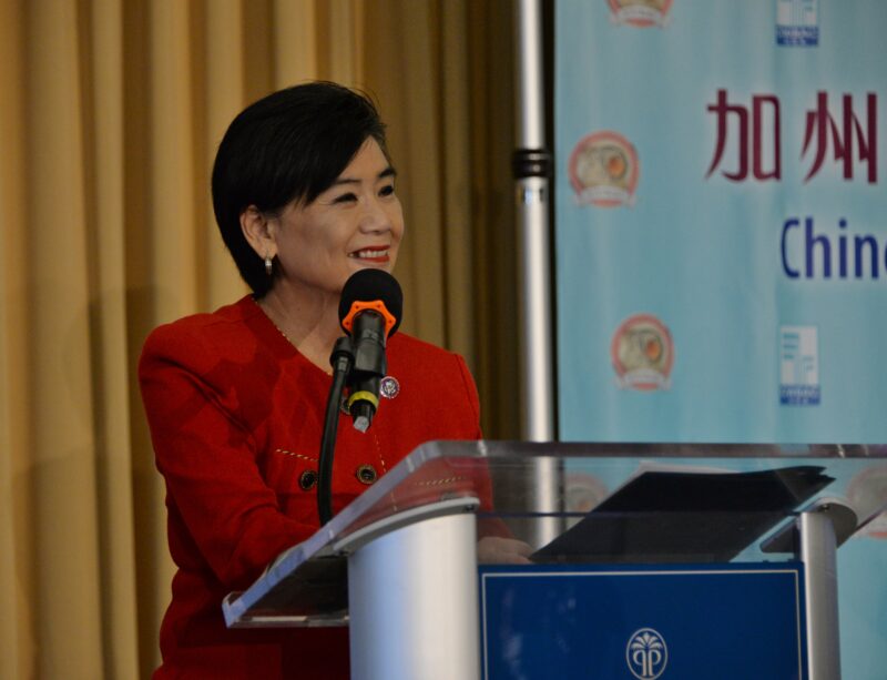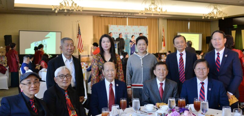 加州财务长马世云、创会会长任菲比与美华总僑領合影