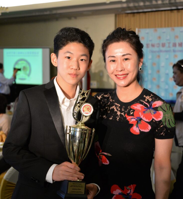 11岁的赵震骐( Lawrence Zhao )获得艺术人才奖和妈妈萌萌合影