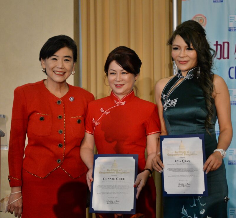 美国国会议员赵美心向新任会长钱懿、理事长徐凤丽颁贺状