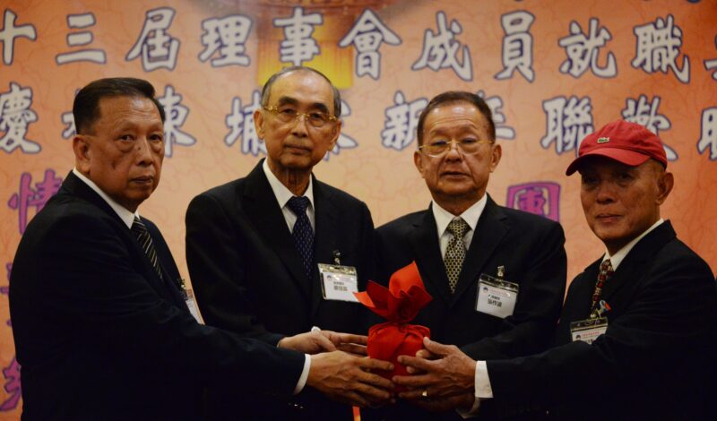 张作波、欧佳霖监交,柬华协会商会新任执行主席杨俊英与陈瑞典主席交接