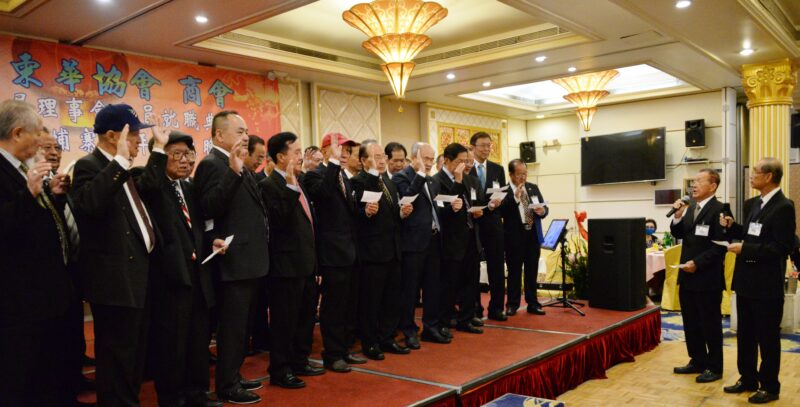 在越柬寮资深侨领、首席顾问张作波、欧佳霖的监交之下,美国柬华协会商会新任执行主席杨俊英从卸任主席陈瑞典手中接过红印章,并在张作波、欧佳霖的监誓下,美国柬华协会商会第十三届理事成员宣誓就职。美国柬华协会商会首席顾问张作波、欧佳霖;名誉会长陈瑞典;共同主席方乐和、谢金昭、丁方景、周志松、任仲颐、赖文强;常务副主席张键伟;理事长吴南双;秘书长陈明珠。
