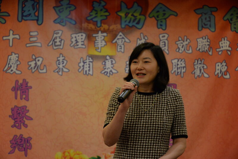 中国驻洛杉矶总领馆领侨处副主任周咏梅致词表示,我和侨务领事路君燮很高兴参加美国柬华协会商会新一届领导集体就职典礼,我谨代表中国驻洛杉矶总领馆,向各位朋友致以诚挚问候和美好祝福,向新当选的柬华协会商会新一届领导集体表达衷心祝贺和期许。柬华协会商会是洛杉矶地区众多侨团中的一员,在关心侨胞、服务侨社、参与公益、回馈社会等方面做了很多事情。在此,我们对商会工作点赞,希望柬华协会商会成员在杨俊英执行主席带领下,继续发扬互帮互助精神,积极参与侨团活动,促进和谐侨社建设,支持中文教育,传承中华文化,推动中美友好,增进中美两国人民之间的理解和友谊。最后,感谢侨胞们对总领馆工作的理解和支特。