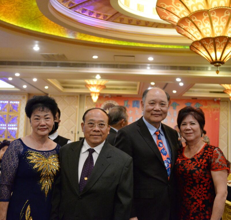 越柬寮资深侨领(右起)唐上胜偕夫人、招铭祺偕夫人