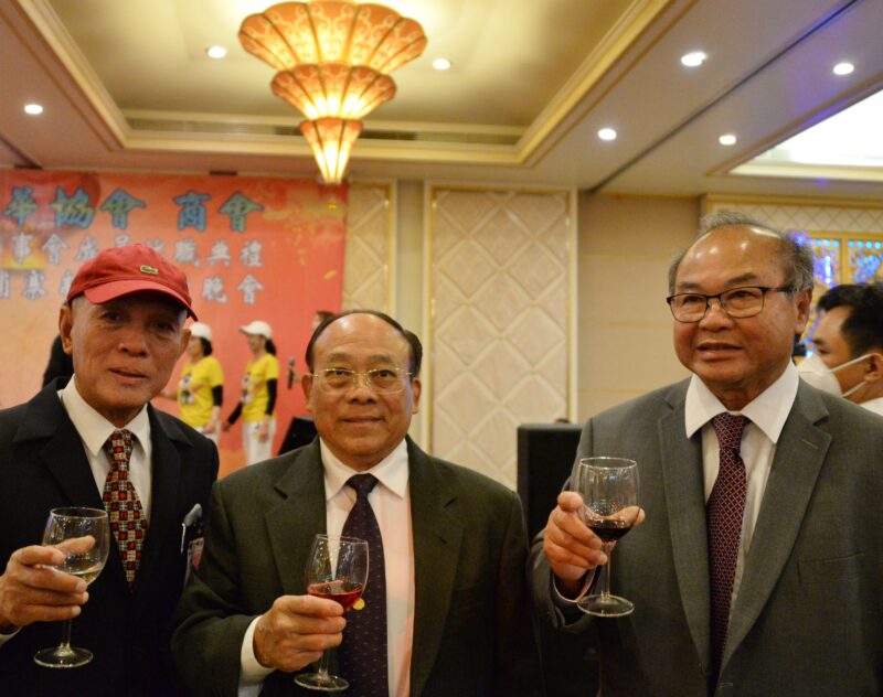右起:越柬寮资深侨领张进财、招铭祺、杨俊英