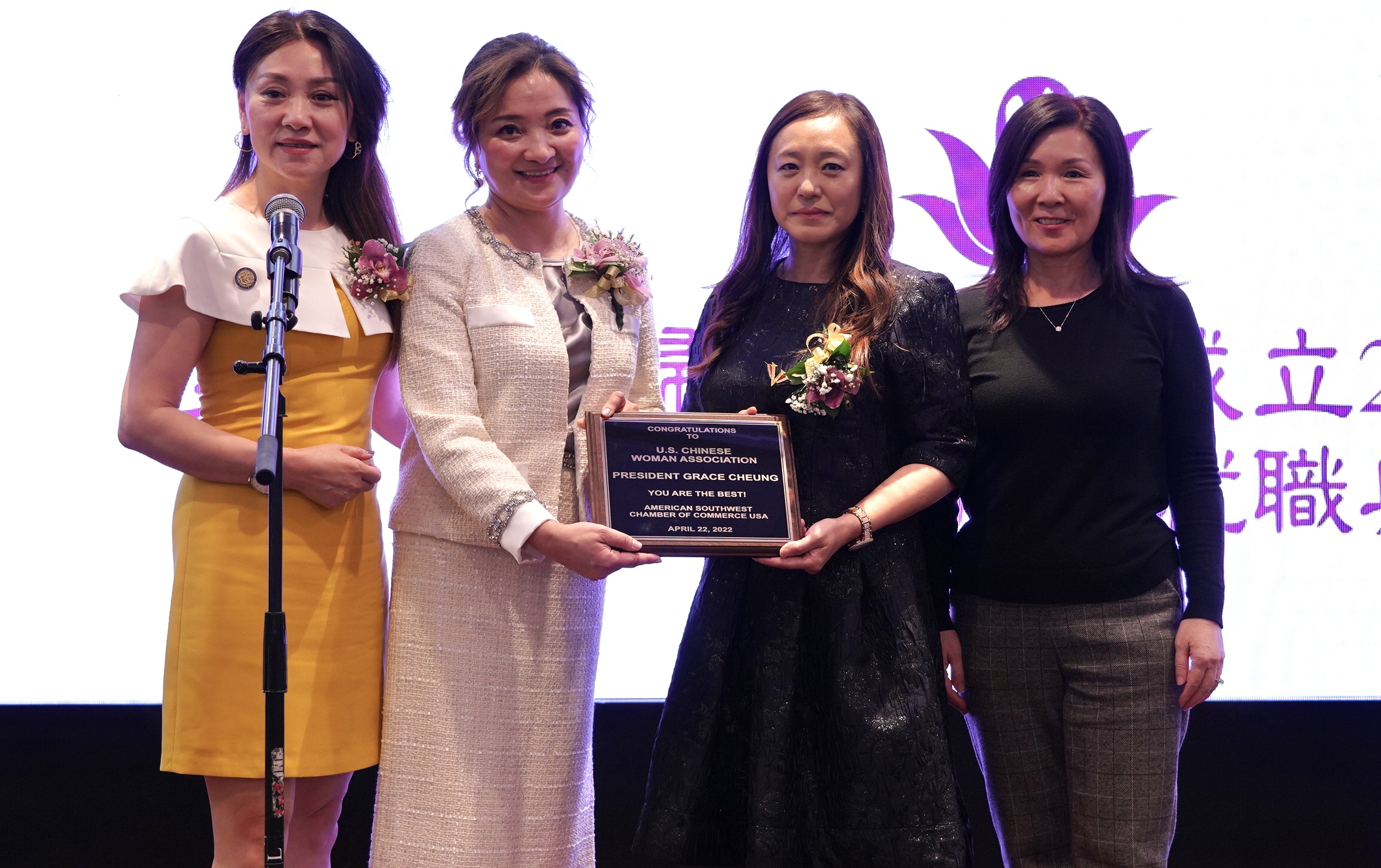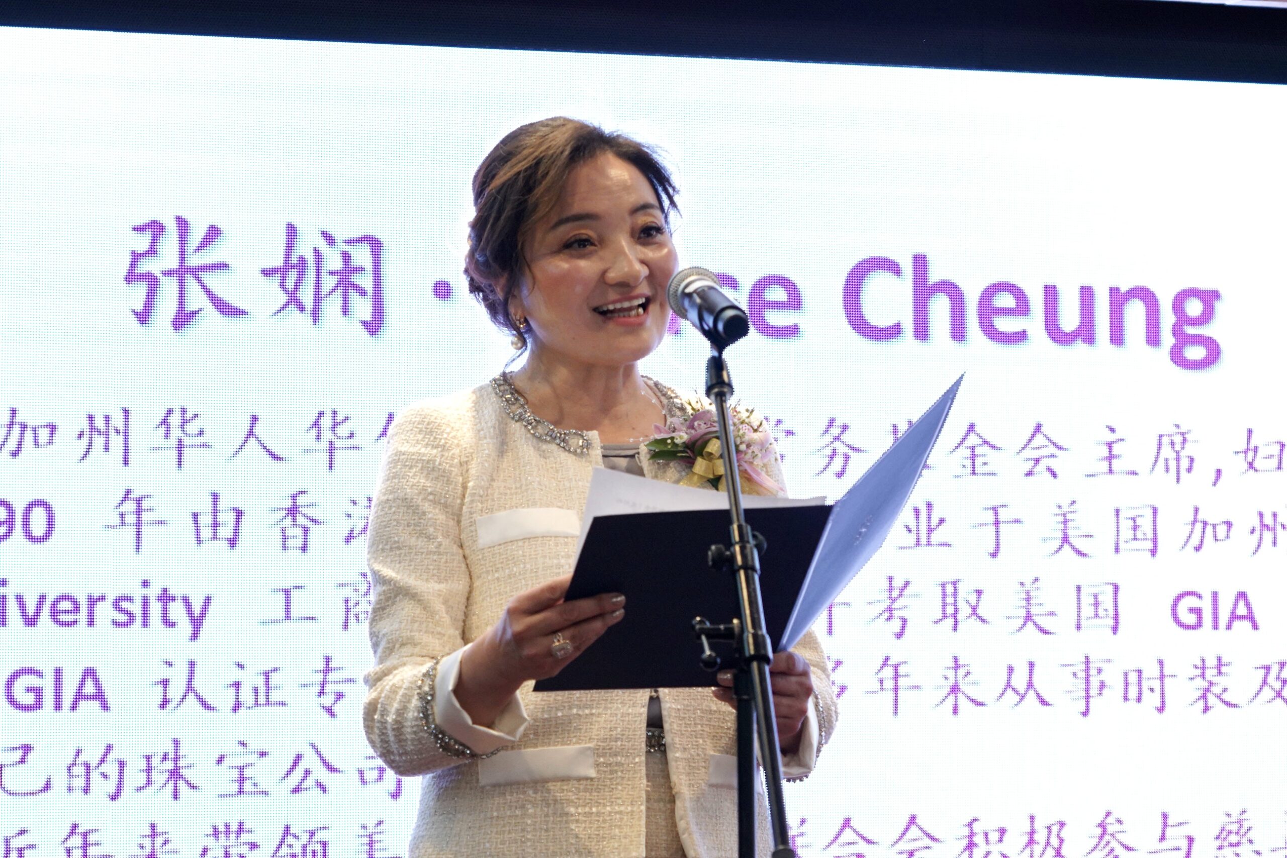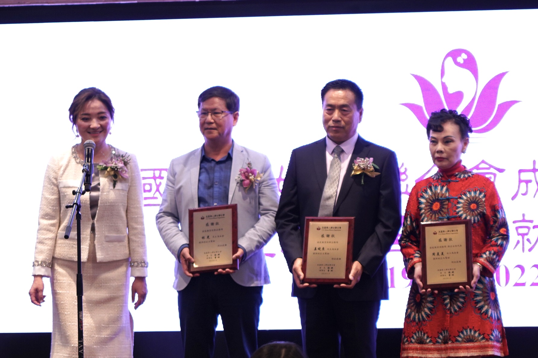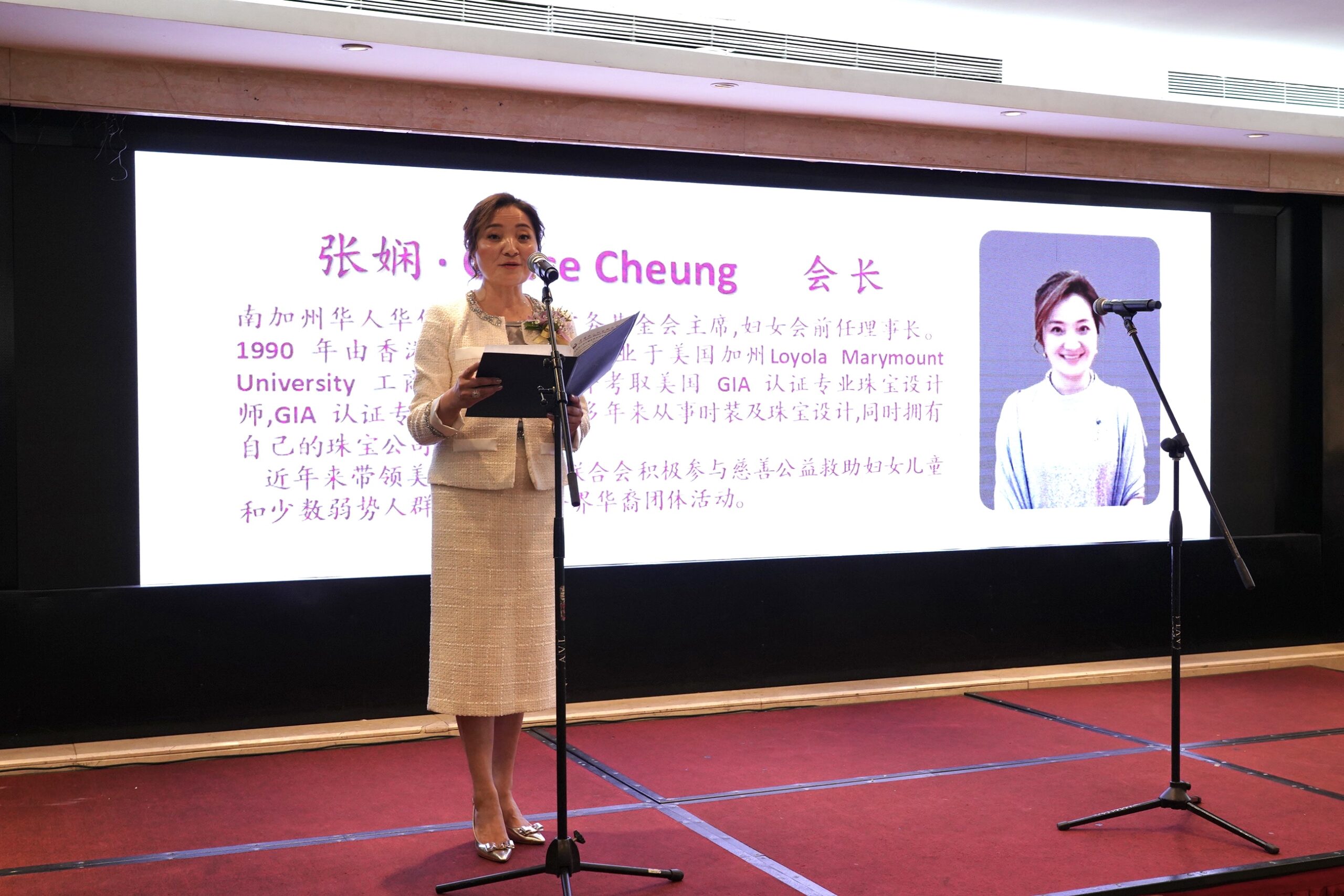 美国华人妇女联合会会长张娴感谢各位嘉宾出席妇女会本届年会。为妇 女会成立 28 周年庆典和新领导团队的就职典礼带来了满满的祝福和关爱。