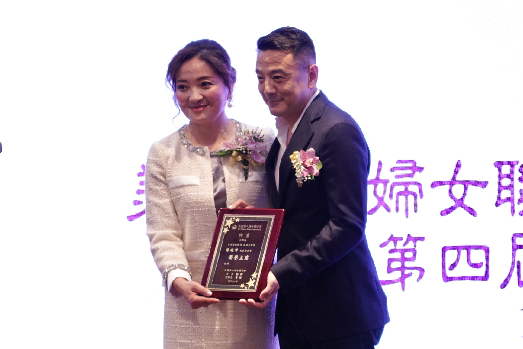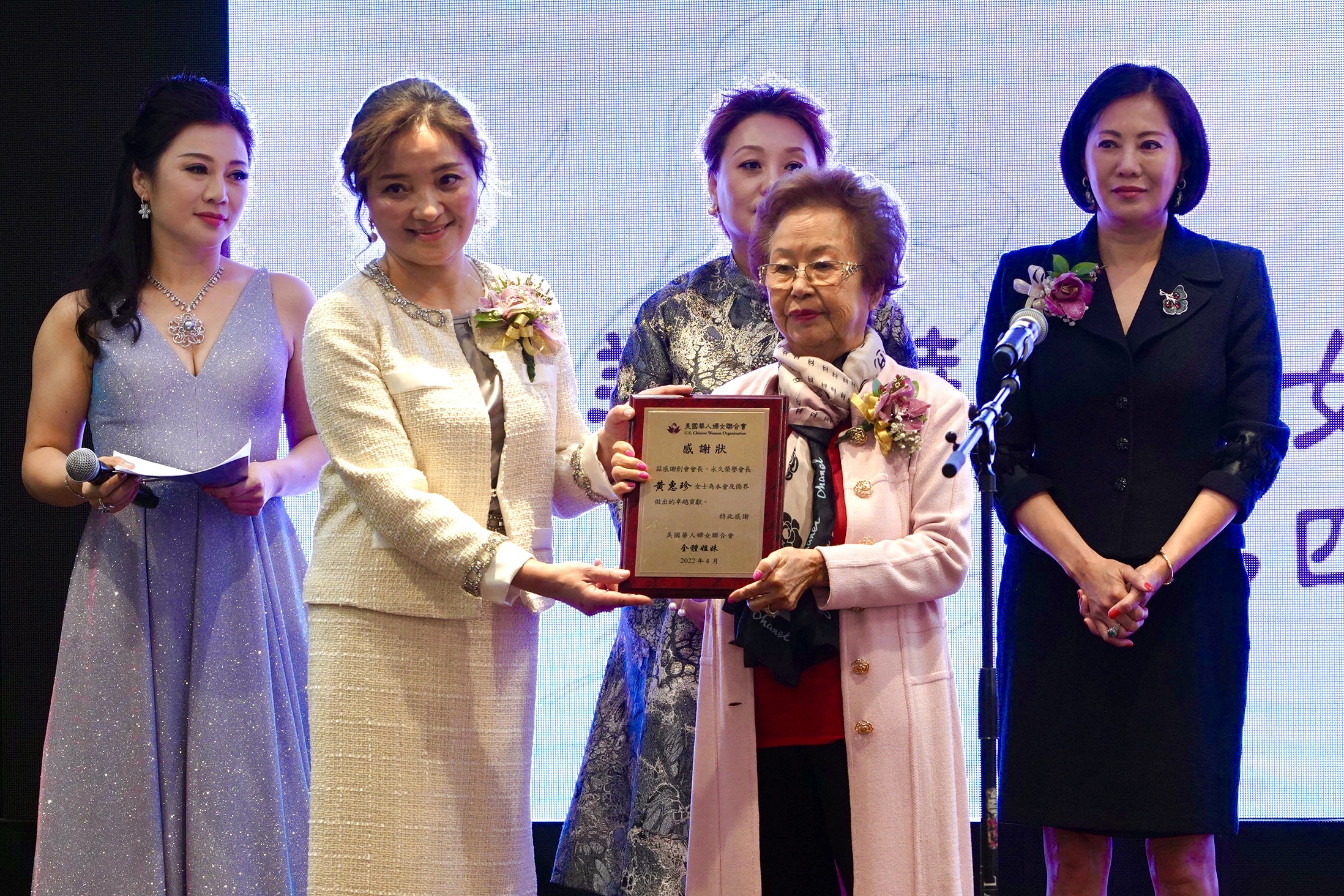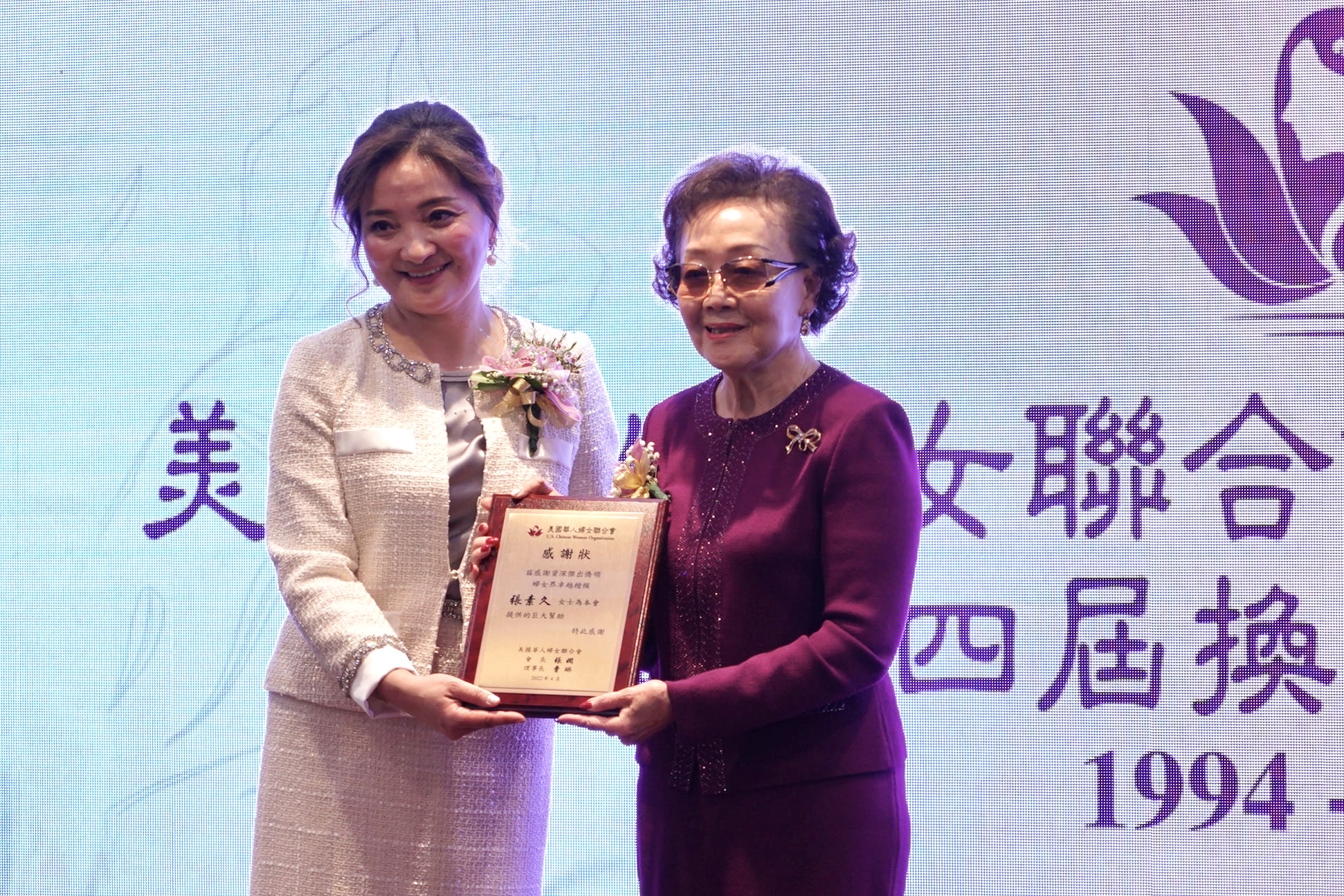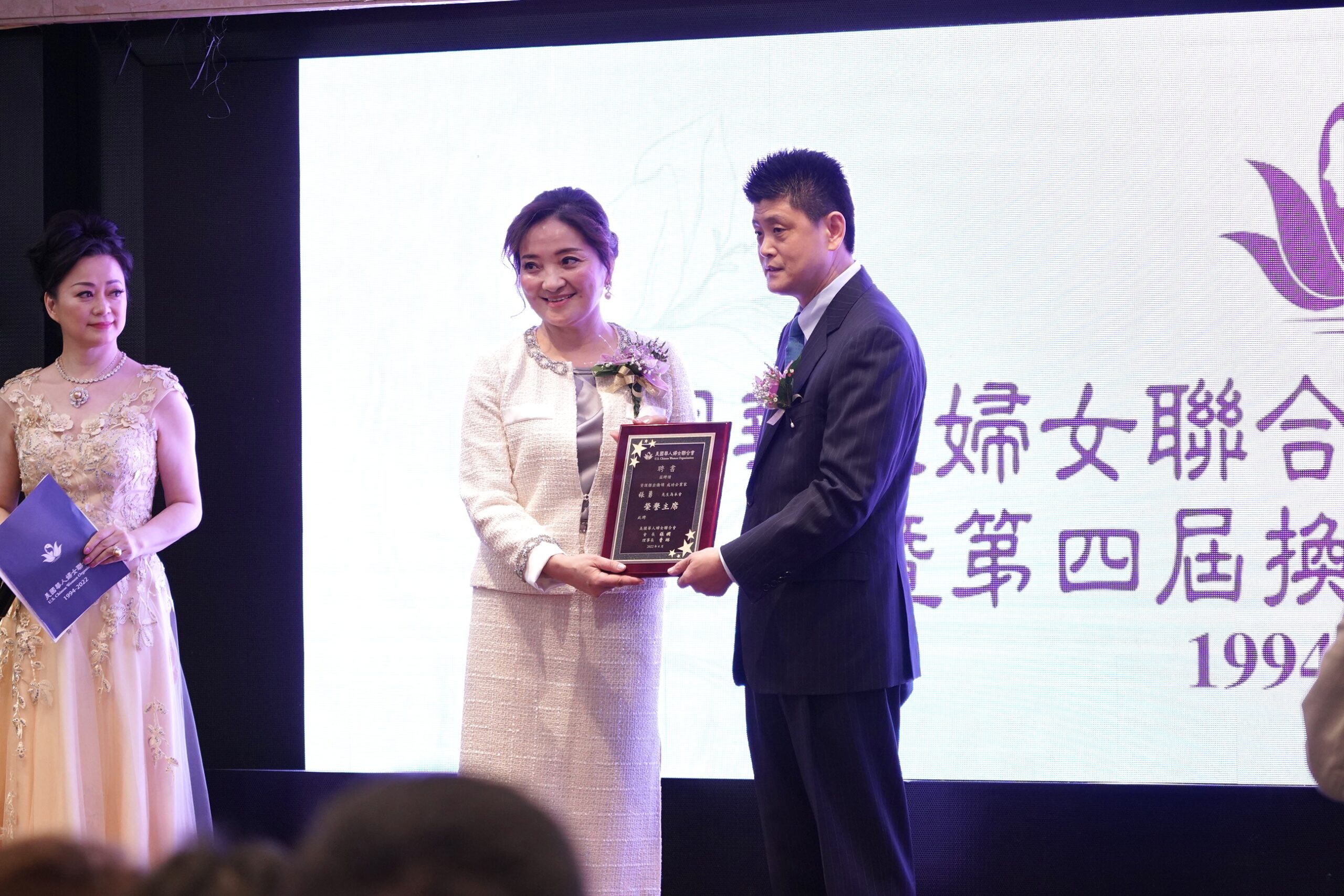 会长张娴向杰出侨领颁赠感谢状