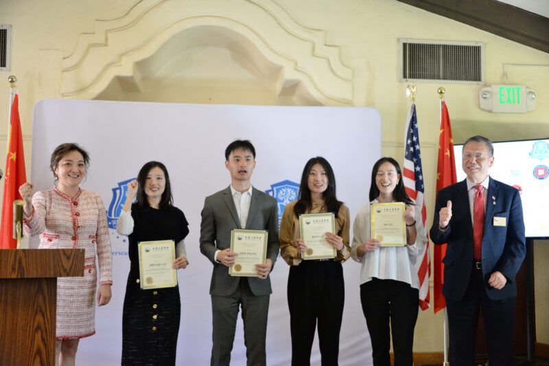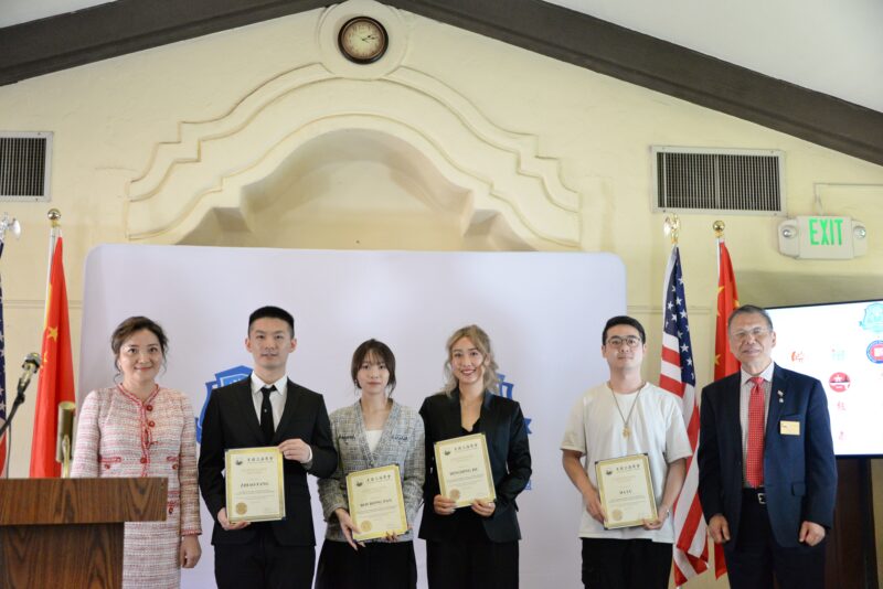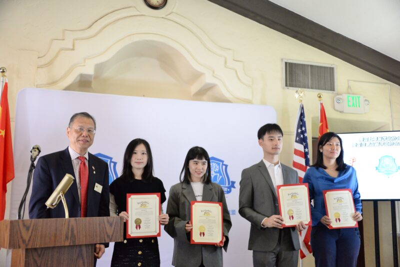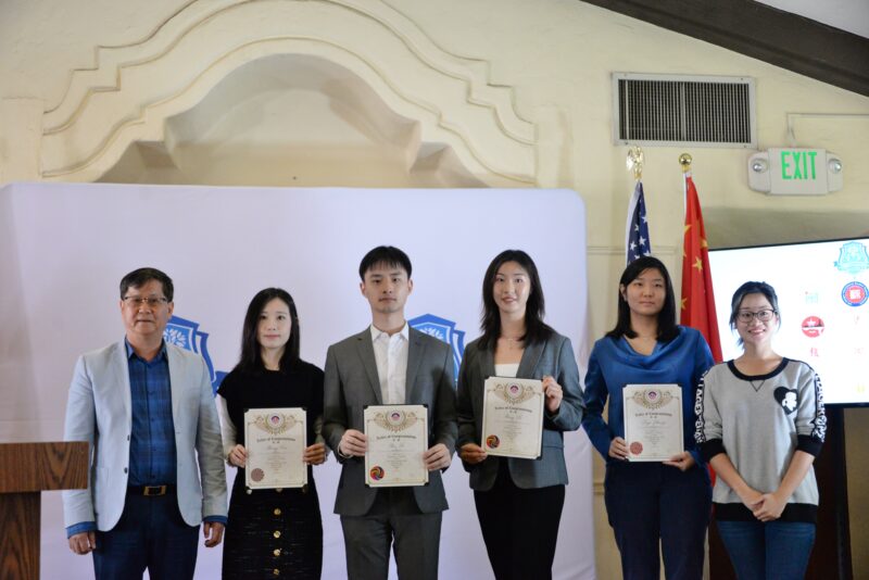 加州教授专家联合协会会长林连连向美国上海留学生协会頒贺状