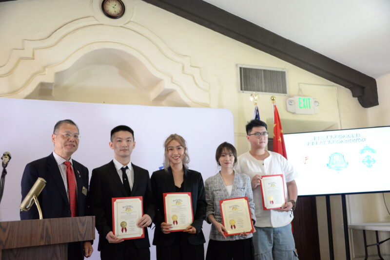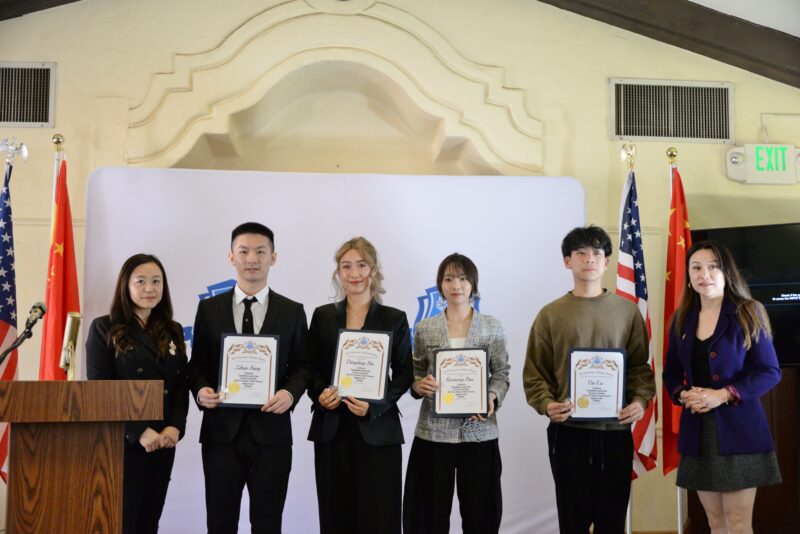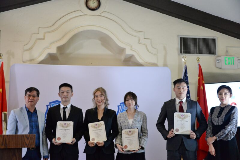 城市新闻4月22日圣盖博报道,美国上海、内蒙古留学生协会换届、成立仪式在圣盖博剧院礼堂顺利举办。圣盖博市长丁言愉、核桃市长秦振国代表米奇·克莱蒙斯(Mitch Clemmons)、亚凯迪亚市议员候选人王爱琳、美国华人大型晚会总导演孙耀宁、全美浙江总商会会长林光、加州教授专家联合协会和南加州华人社团会长林连连、美国上海商会会长张娴、美国内蒙古总商会会长、美国女企业家俱乐部主席于忠霞、中美戏剧联盟代表Jimmy、美国阿波罗影视传媒集团总裁子繁、美国华人美术家学会副会长王侠力、众鑫保险代表 Calvin分别向当选这一届美国内蒙古留学生协会主席方子豪、美国内蒙古留学生协会副主席路达、美国内蒙古留学生协会宣传部长胡丁丁、美国内蒙古留学生协会活动部长潘柔蓉、美国上海留学生协会主席蔡沈祺、美国上海留学生协会副主席李睿、美国上海留学生协会活动部长章子琦、以及美国上海留学生协会外联部长李融颁发贺状,并发表致辞。此次成立仪式由众鑫保险赞助。美国广东留学生协会活动部长董智豪主持本次成立仪式。