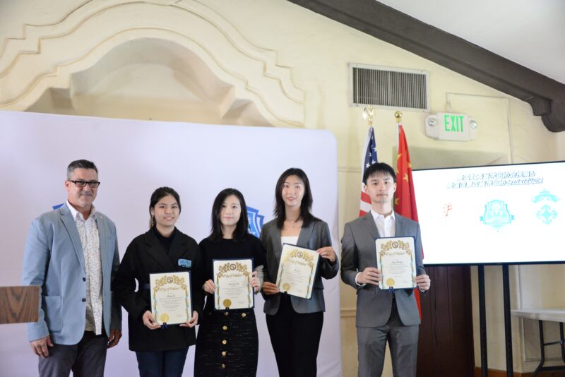 圣盖博市长丁言愉向美国上海留学生协会颁贺状