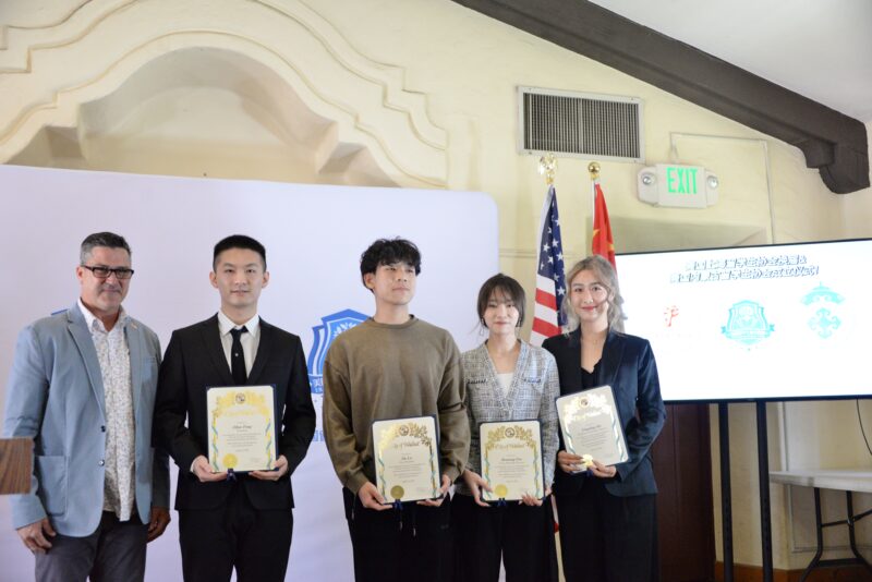 核桃市长秦振国代表Mitch Clemmons向美国上海留学生协会頒贺状