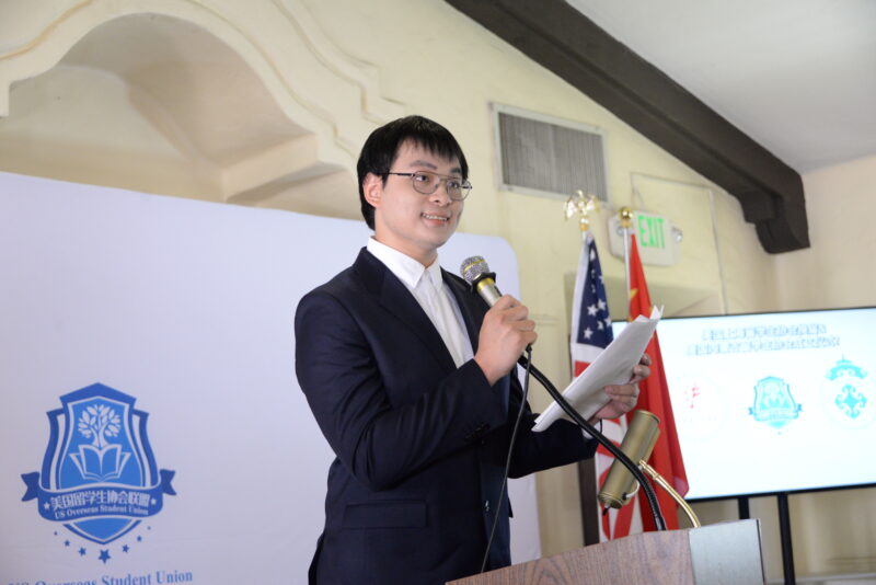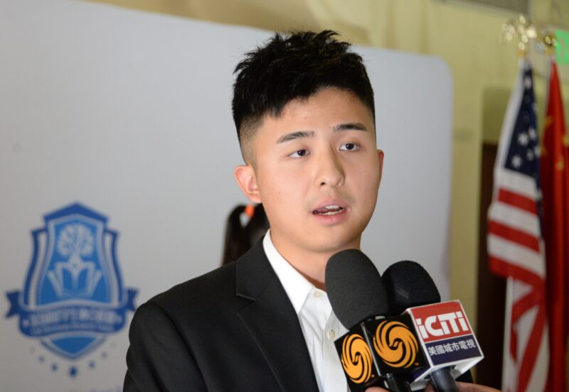 美国内蒙古留学生协会主席方子豪接受记者访问