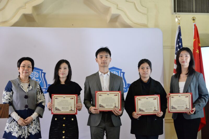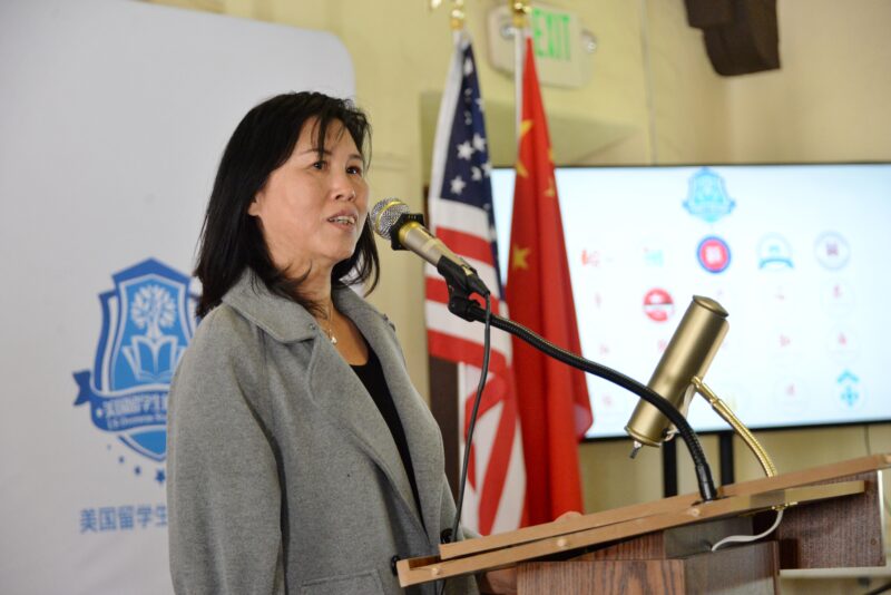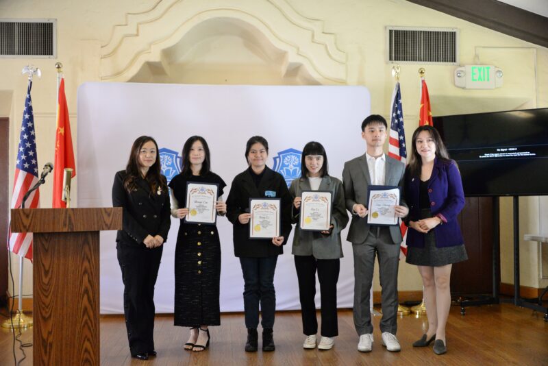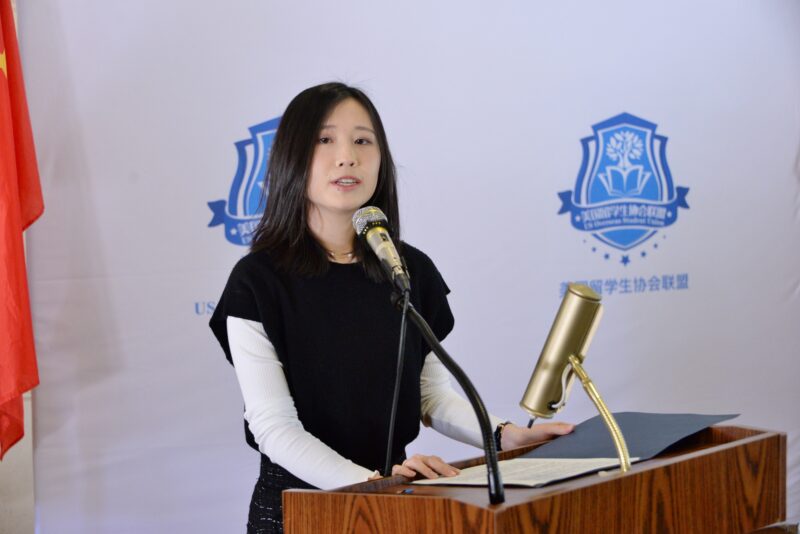 美国上海商会会长张娴向美国内蒙古留学生协会颁贺状