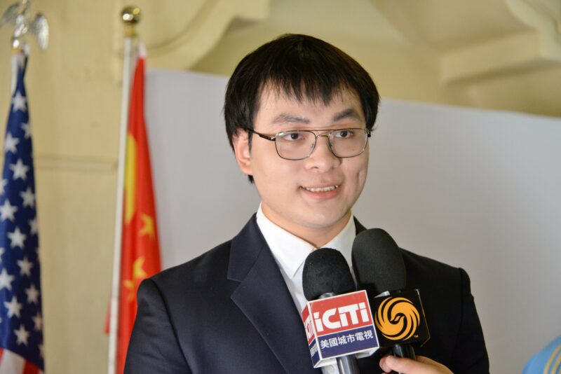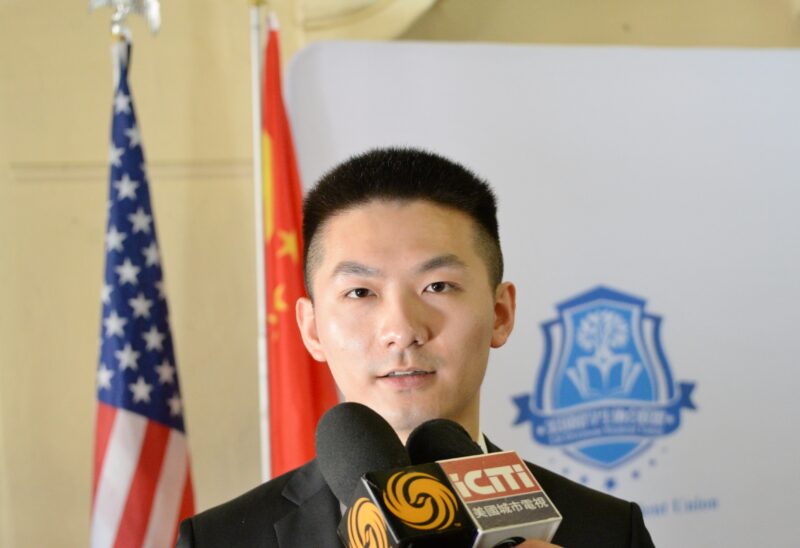 美国留学生联盟宣传部长刘正鑫接受记者访问