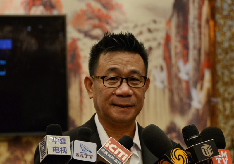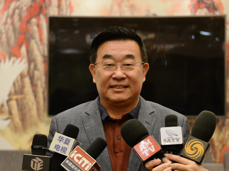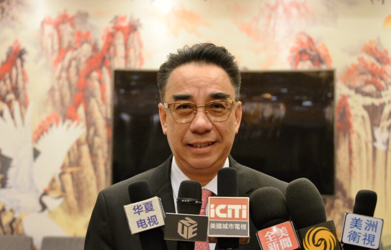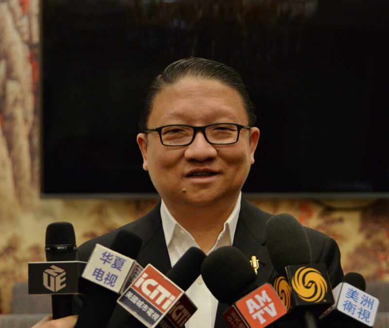 美国南加州华人华侨联合会长蔡成华接受记者访问