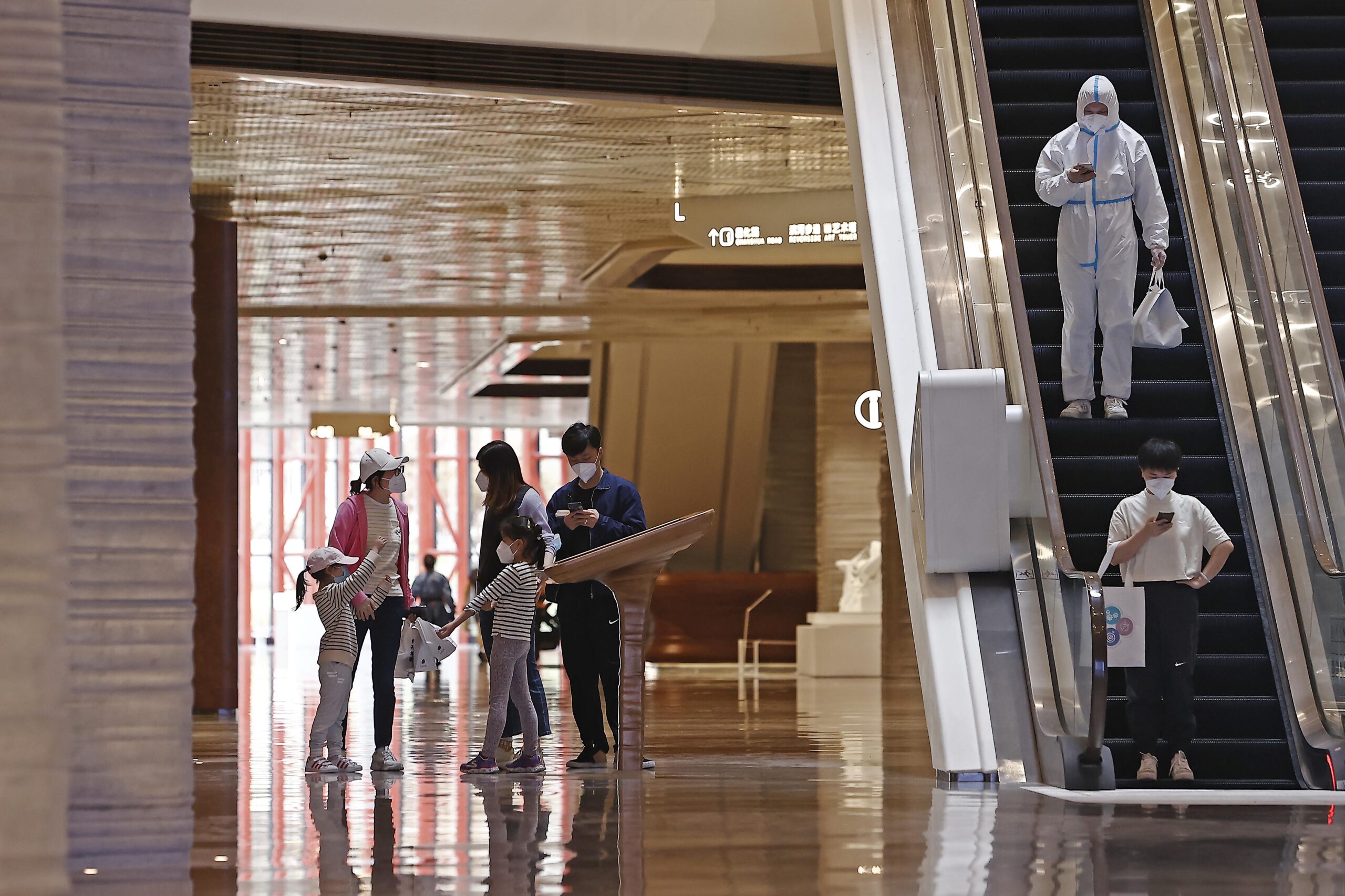 5月26日,民众带着孩子在上海市普陀区大洋晶典·天安千树商场内购买美食。当日,作为上海首个实现社会面清零的中心城区,普陀区辖区内的商业综合体大洋晶典·天安千树恢复线下营业。商场内的20多家餐饮类商户,提供外卖、团购、自提的服务,堂食尚未开放。
