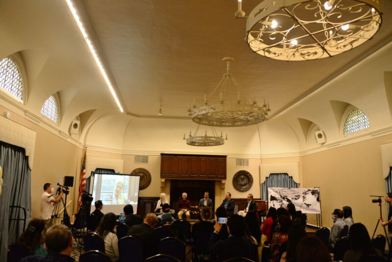 城市新闻5月29日帕萨迪纳报道,胡金铨基金会在莎士比亚俱乐部举办胡金铨导演九十冥诞纪念座谈会,UCLA 中国研究中心主任及亚洲语言与文化、电影双学系教授白睿文(Michael Berry)介绍分析胡金铨导演影片;胡金铨导演生前好友张错教授、杨敦平导演、华纳兄弟电影公司国际部经理穆晓橙、前艾美奖获奖制片人Rosemary Danon与大家分享胡金铨导演其人其事,多位港台艺人也用视讯录制的方式,共同参与这一个温馨的怀念活动。美国优优剧团团长盛壹莉、执行长郑静雯、中国新锐导演范欣、小明星子慧等各界人士参加。