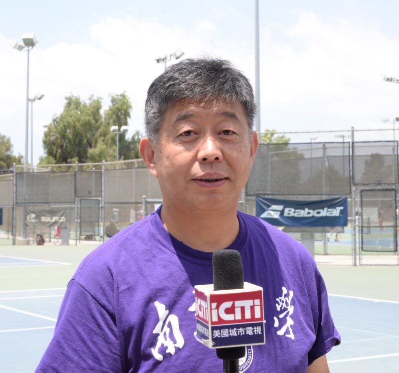 南加州中华高校校友会联盟网球俱乐部主任王青接受记者访问