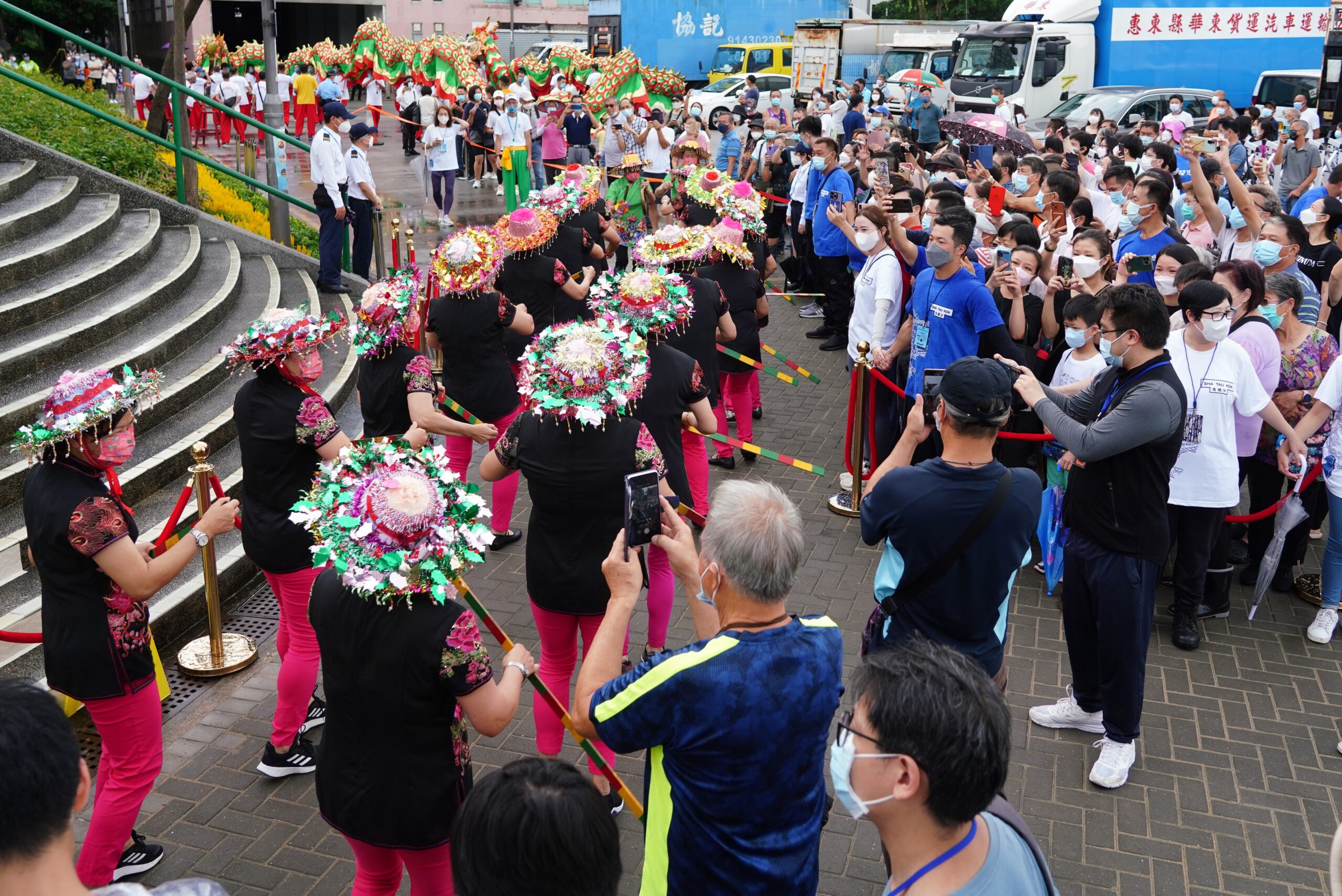 6月3日,位于香港边境禁区的沙头角码头正式向香港本地旅行团开放,推动沙头角及新界东北旅游发展。沙头角自上世纪60年代以来实施边境禁区管制,因此大部分香港市民一直没有机会踏足沙头角,令这个地方充满神秘感。图为开放仪式上当地居民表演龙舟舞。