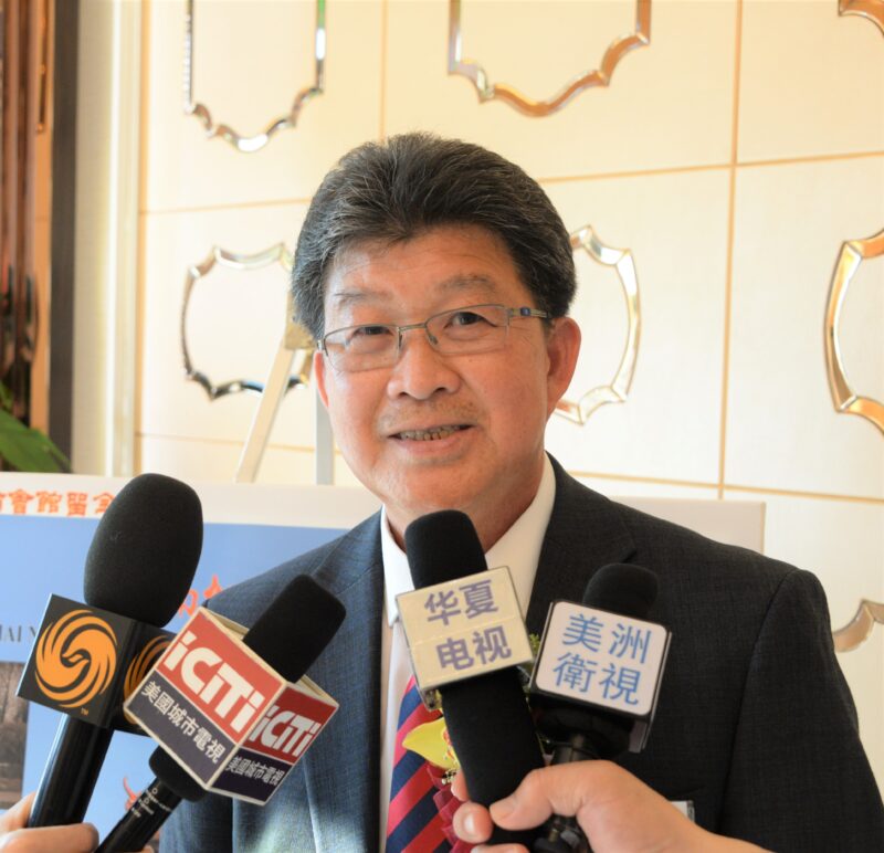 美国南加州海南会馆会长王缵利接受各大媒体记者访问