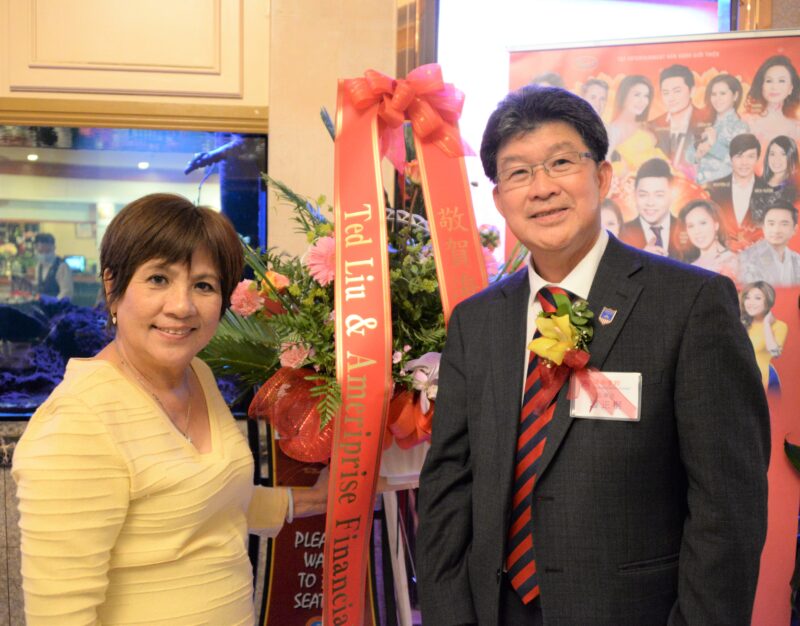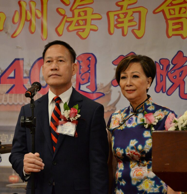 南加州海南会馆监事长潘正桐偕夫人林月娥在盛会上