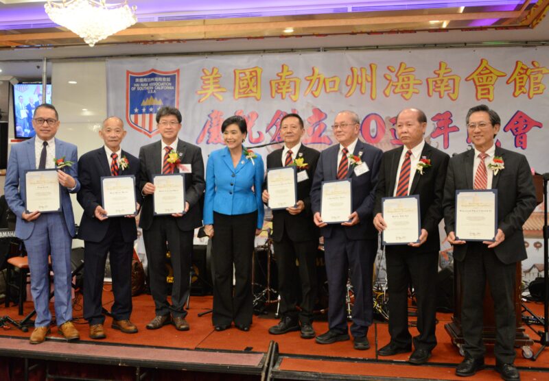 城市新闻6月11日柔似蜜市报道,南加州海南会馆四十周年庆典在888海珍大酒楼盛大举行,美国国会议员赵美心(Judy Chu)、中国驻洛杉矶总领事馆副总领事庄志哲、侨务领事路君燮、圣盖博市副市长丁言愉、蒙特利公园市议员饶影凡、El Monte市议员Martin R.Herrera、阿罕伯拉市长Sasha Renee Perez、世界越柬寮华人团体联合会永远最高顾问张作波、欧佳霖等政要名流500多人出席。美国国会议员赵美心等民选员向美国南加州海南会馆会长王缵利、监事长潘正桐、荣誉会长吕诗澄等颁发贺状,对海南会馆四十周年表示最热烈祝贺。符敦远、潘小芳主持盛典,晚会有丰富奬品供抽奬,专业歌手演唱,并带动全场舞起来,全埸热舞沸腾,Hi到最高点。