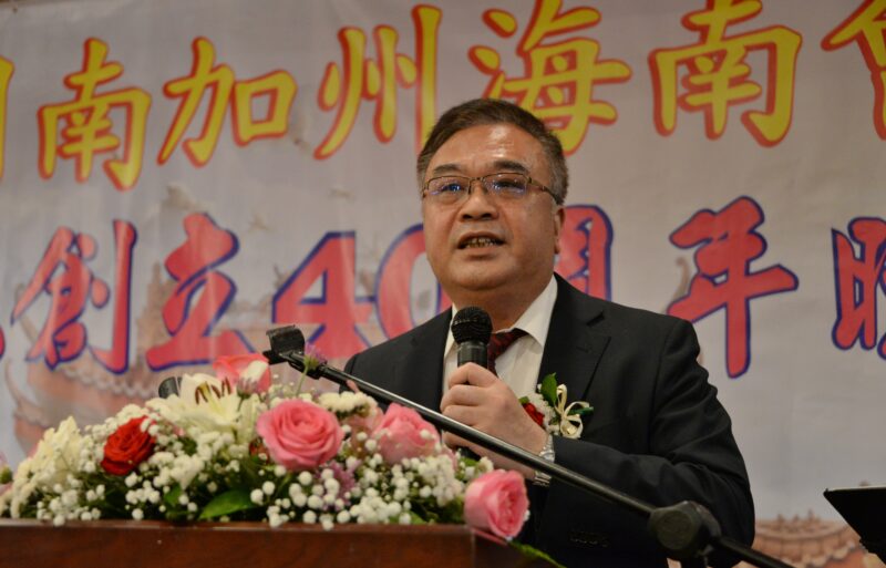 中国驻洛杉矶总领事馆副总领事庄志哲致词表示,南加州海南会馆隆重举行创会40 周年庆典,我谨代表中国驻洛杉矶总领事馆表示热烈祝贺,向南加州的海南乡亲表示诚挚问候。海南会馆成立40 年来始终秉持「联络感情、促进团结、发挥互助、服务同乡」创会宗旨,致力手服务海南乡亲,传承中华民族传统美德,守望相助、积极进取、尊老重教、奉献爱心,为维护侨胞权益,推动侨胞融入当地社会,促进广大侨胞沟通乡情、互助互爱发挥了重要作用。