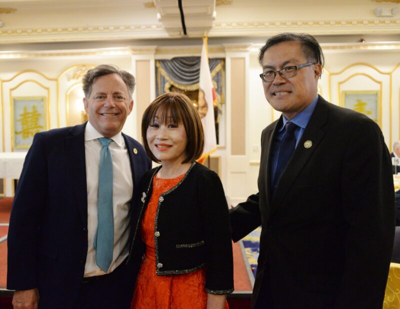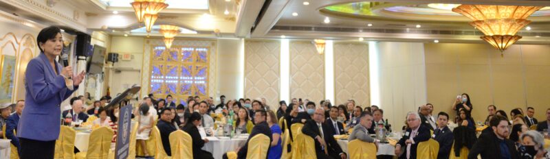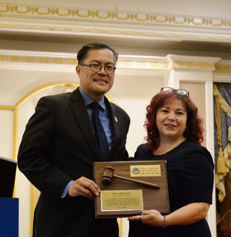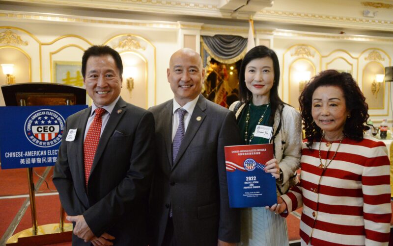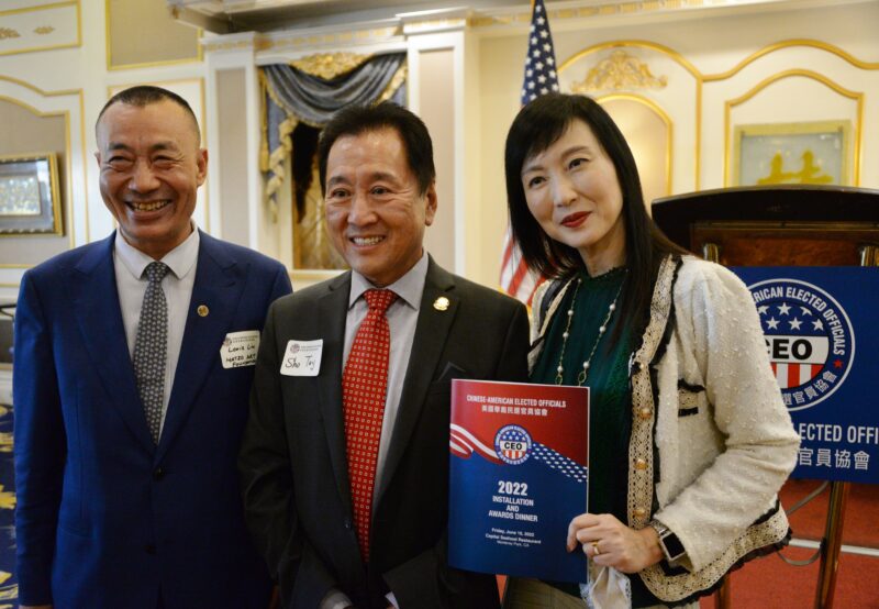 城市新6月10日蒙特利公园市报,美国华裔民选官员协会(CEO)在蒙特利公园市金都凯旋皇宫隆重举行2022年理事会就职典礼及晚宴,蒙特利公园市市议员梁侨汉(Hans Liang)接任方树强担任新一届会长,美国会议员赵美心等民选官员、社区领袖及美国陆军代表近400多人参加,盛况空前。