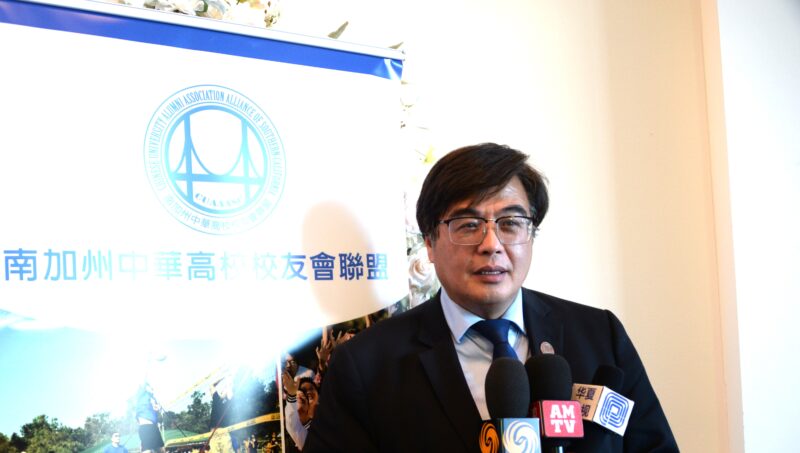 南加州中华高校校友会联盟会长、组委会主席张鸣接受記者訪問