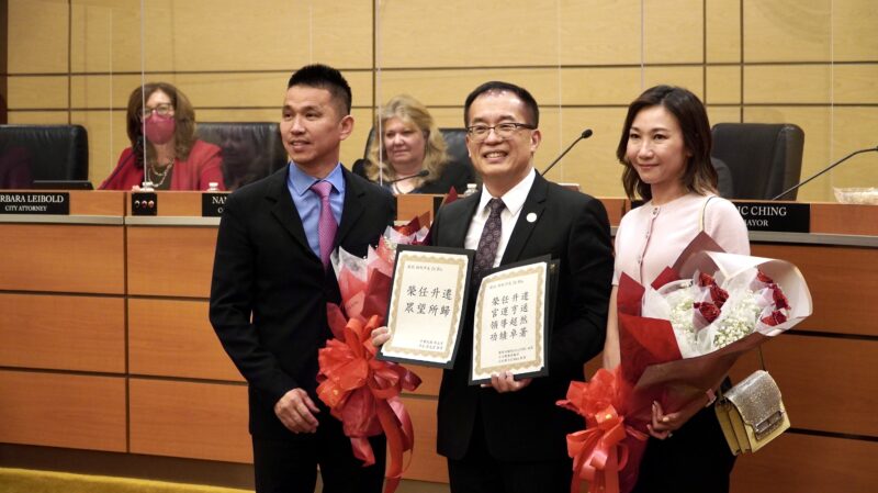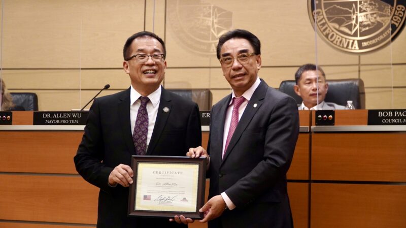 核桃市市长伍立伦(Allen Wu)接受賀牌