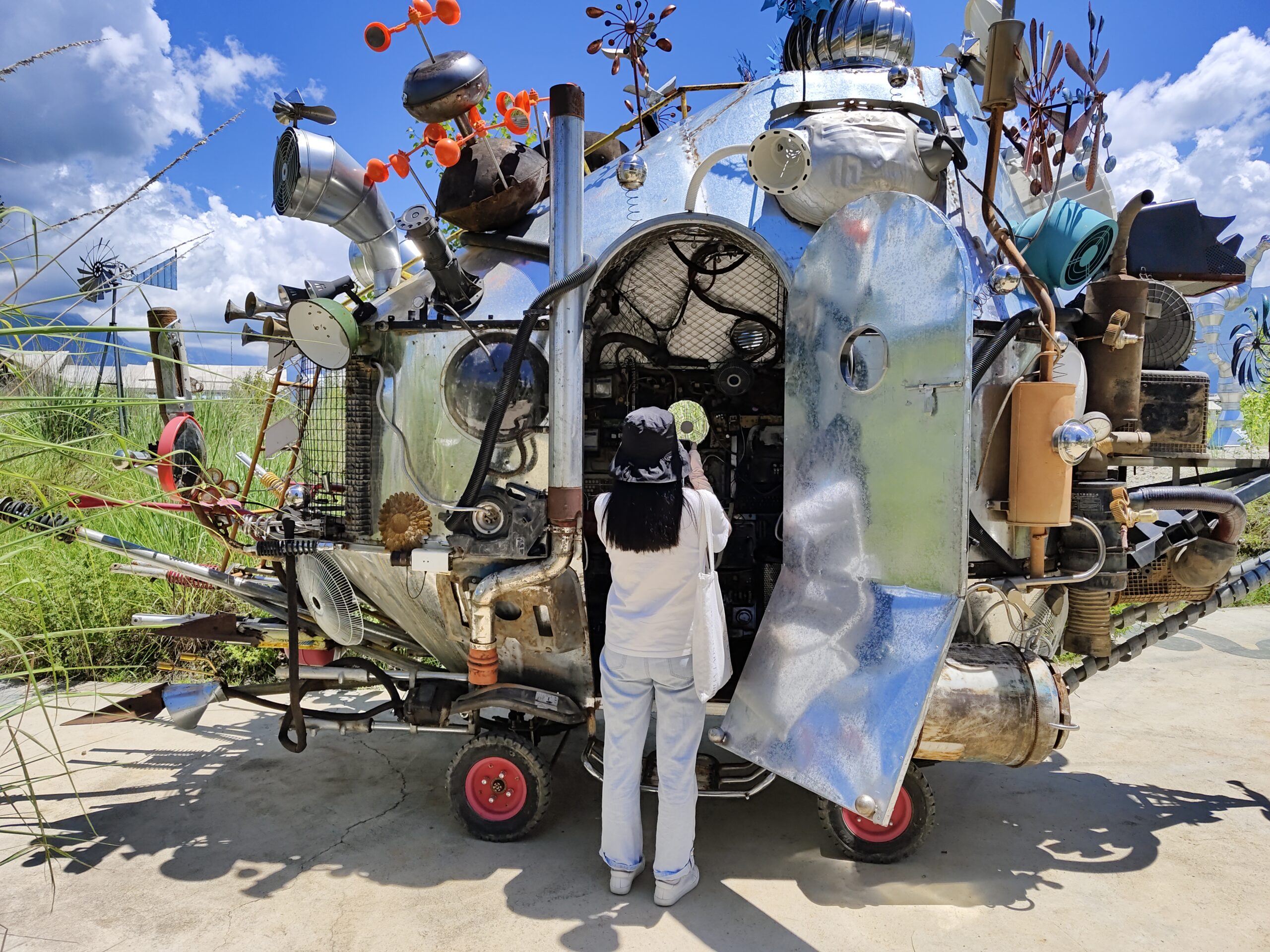7月14日,游客在“荒野之国”拍摄造型奇特的车辆。坐落在云南丽江雪山艺术小镇的“荒野之国”宛如童话世界,吸引着各地游客前来打卡。 未经允许不得转载:城市新闻网icitynews » 云南丽江:童话世界“荒野之国”吸引游客