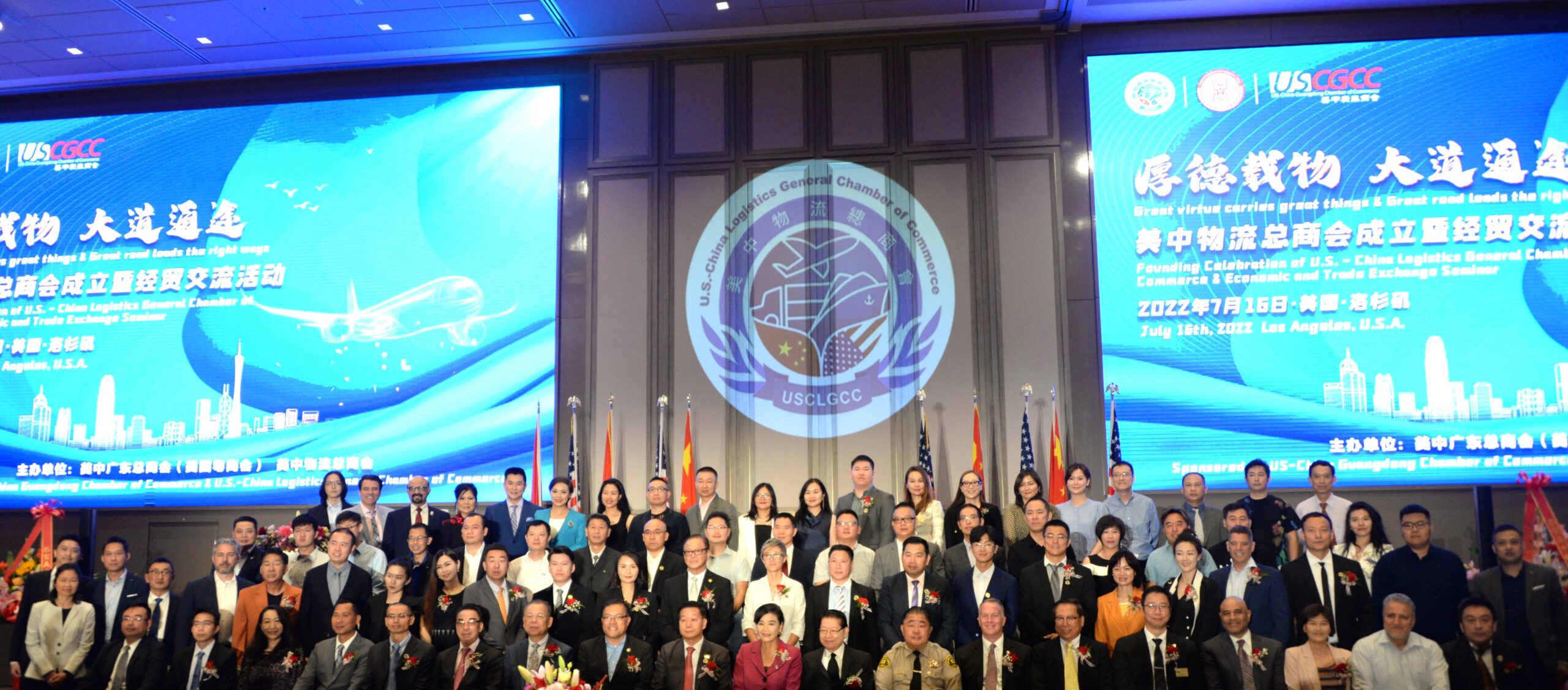 美中物流总商会创会会长张铁流、执行会长帅勇、理事长赖凯文、监事长谢少华、财务长吴佳琳、秘书长黄有莉、行政主任张丽媛、及各位创会会长等。美中物流总商会成立盛典由美中广东总商会(美国粤商会)和美中物流总商会主办。张铁流会长致词表示,商会创会宗旨:“发展美中市场,繁荣美中经济,造福两国人民。同时, 美中物流总商会还将履行自己应尽的一份社会责任和义务,积极帮助和支持社会 的和谐发展,与各界共同携手向未来”。现在是万物互联的世界,瞬息万变的时代,唯有超越方能领先。这是一种知行合一的经营智慧。