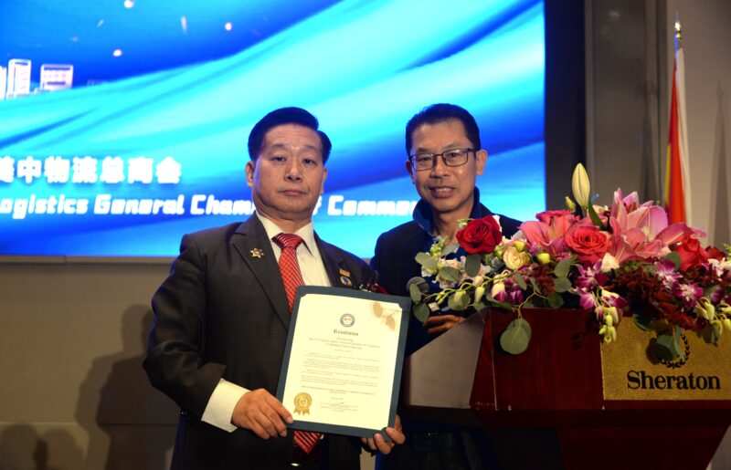 美中物流总商会创会会长张铁流向理事长赖凯文頒任職牌