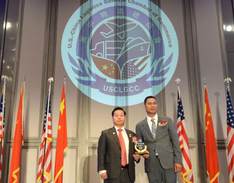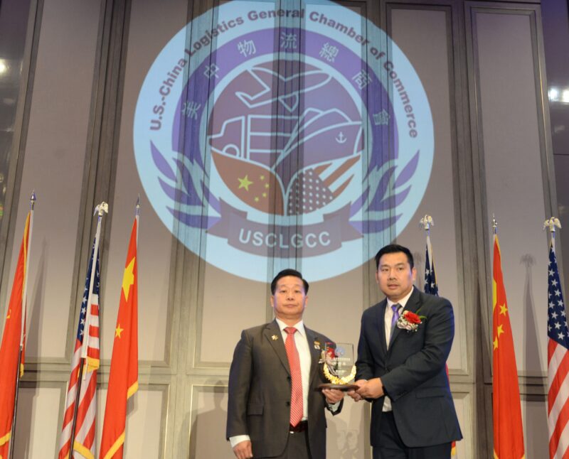 美中物流总商会创会会长张铁流頒任職牌
