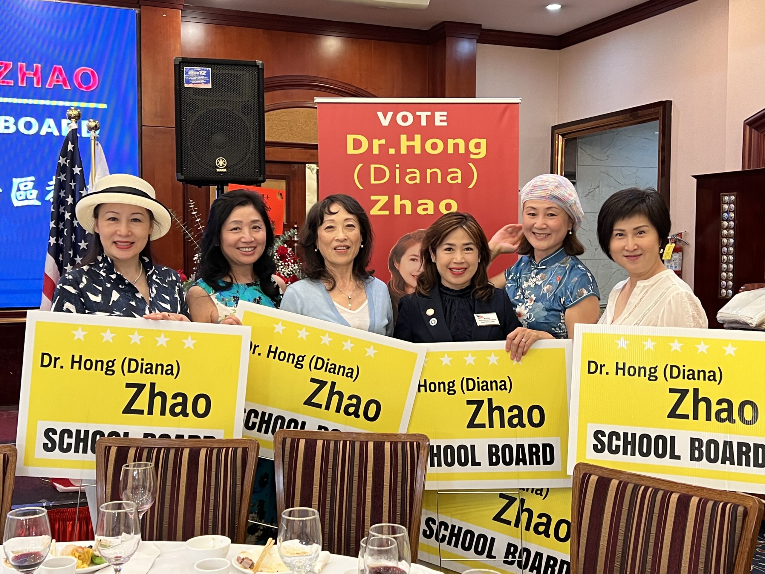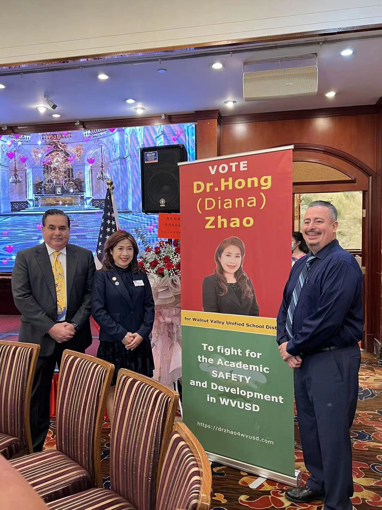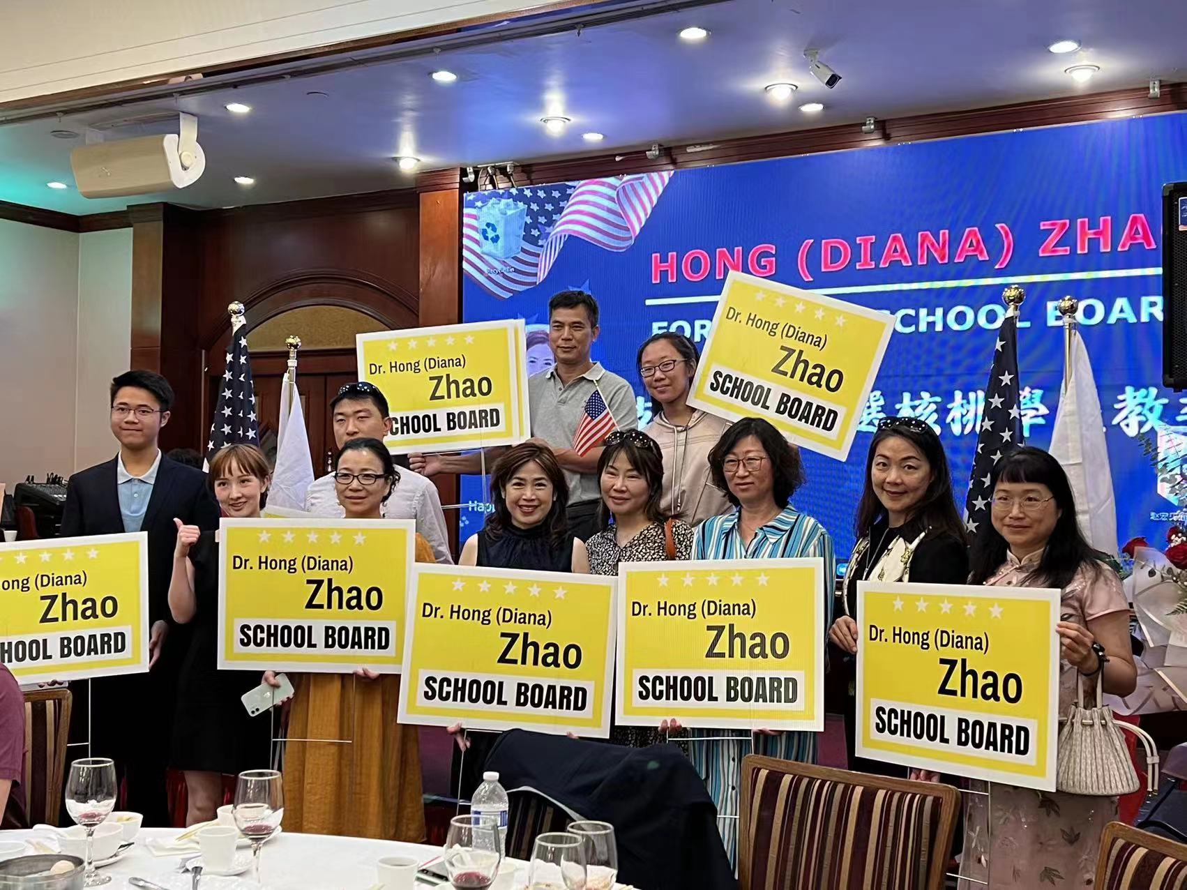来美20余年的第一代移民、 南加大博士赵宏(Diana Zhao), 于7月22日在罗兰岗凯悦大酒楼举行参加核桃学区教委的竞选造势活动。核桃市市市长伍立伦、阿罕布拉学区教委主席Ken Tang、蒙特利公园市前市长林达坚、洛杉矶县儿童福利局的代表Robert Rodriguez以及南加州侨界和核桃谷学区家长会的代表近200人到场力挺。