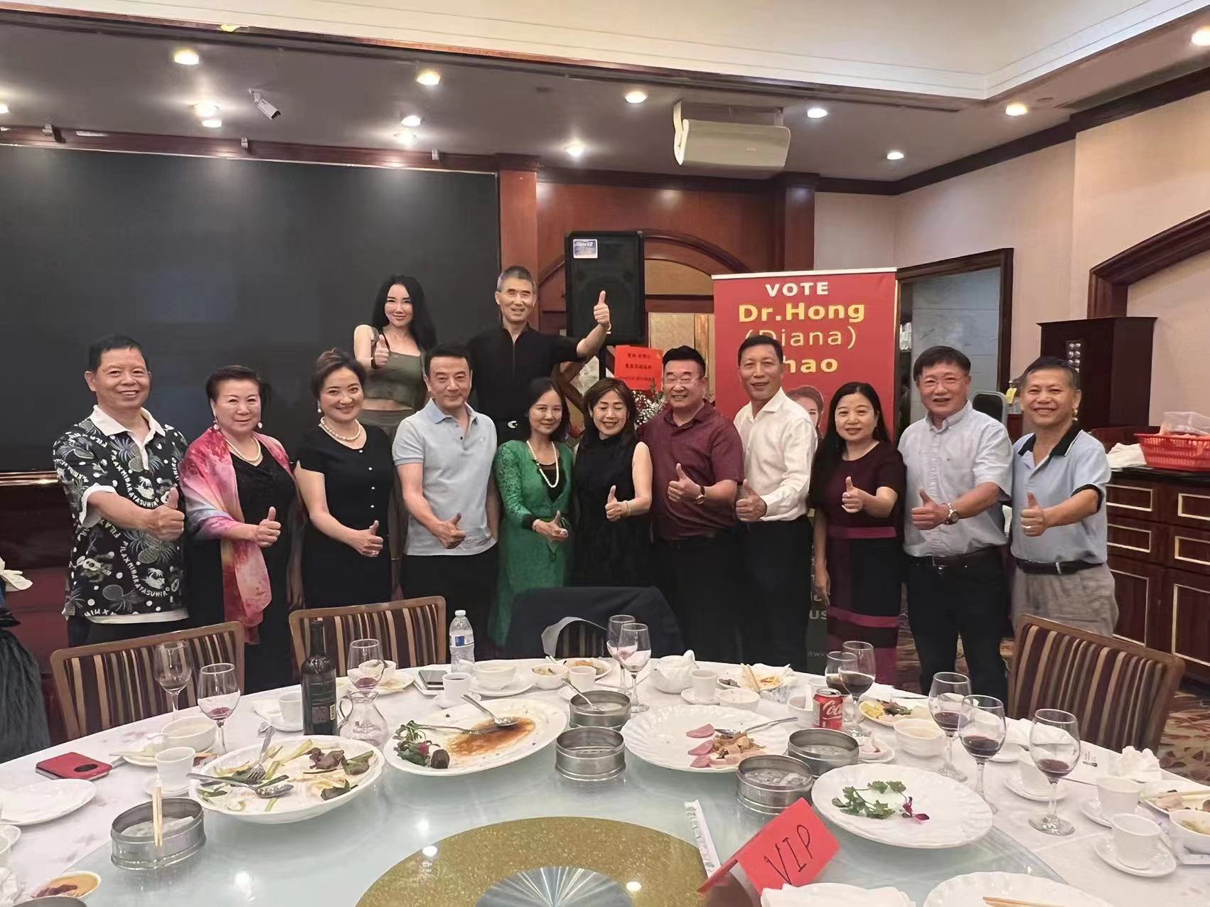 当天的活动是美国南加州华人华侨联合总会、美国江苏经贸文化联合会、美国南京同乡会、美国无锡商会、美國華人大聯盟等各大侨团共同发起支持赵宏博士的竞选见面会,也是赵宏竞选的首次筹款会。与会者纷纷登台致辞,表达对赵宏参选的支持。