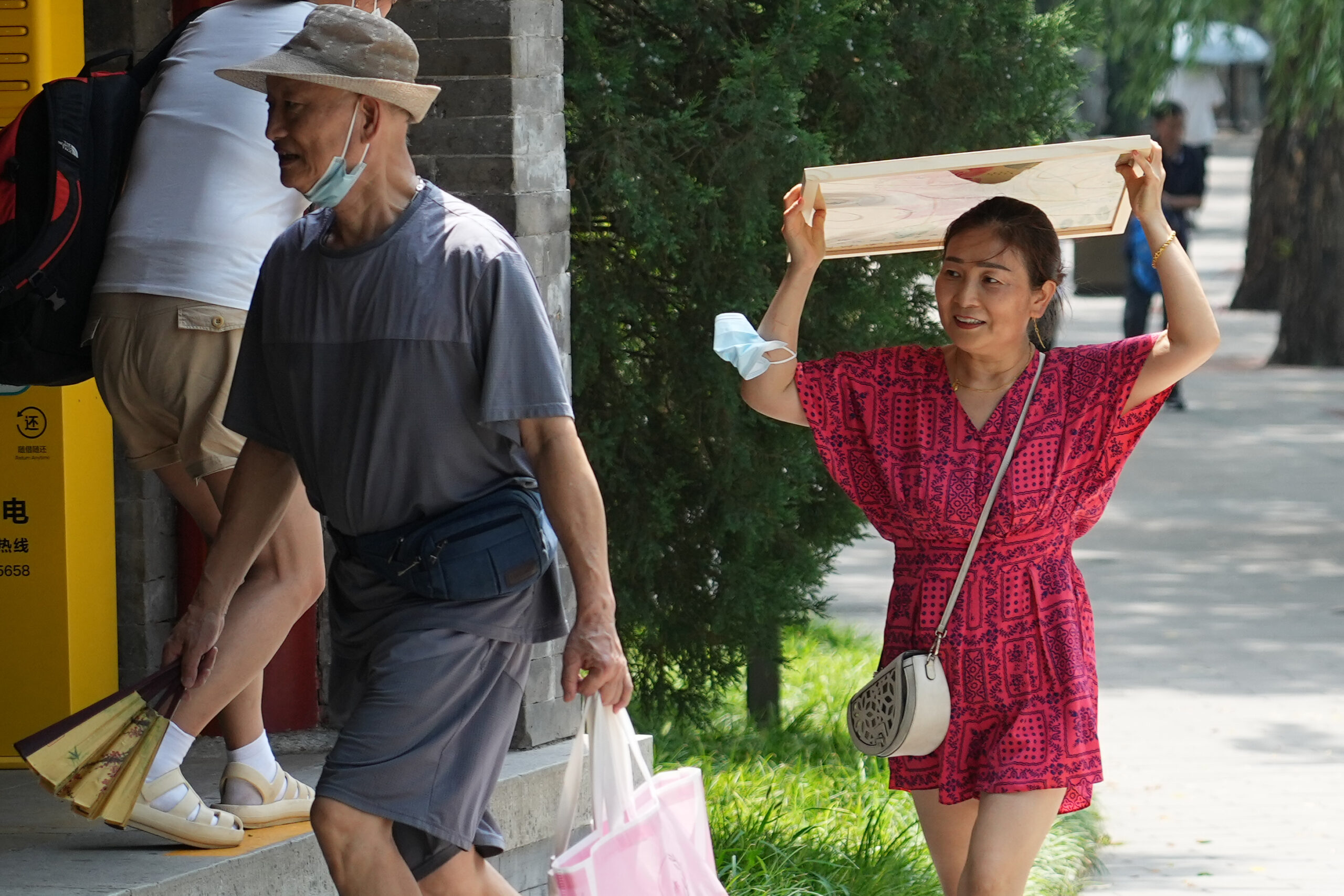 8月3日,北京,一名游客游览北海公园时利用画框遮阳。据当地气象部门预计,8月2日起至6日,北京将持续高温闷热,白天最高气温在34℃至35℃,最小相对湿度50%至60%。 未经允许不得转载:城市新闻网icitynews » 北京持续高温闷热天气
