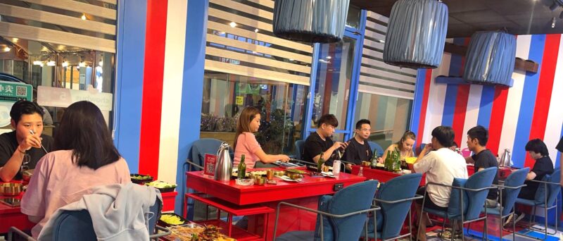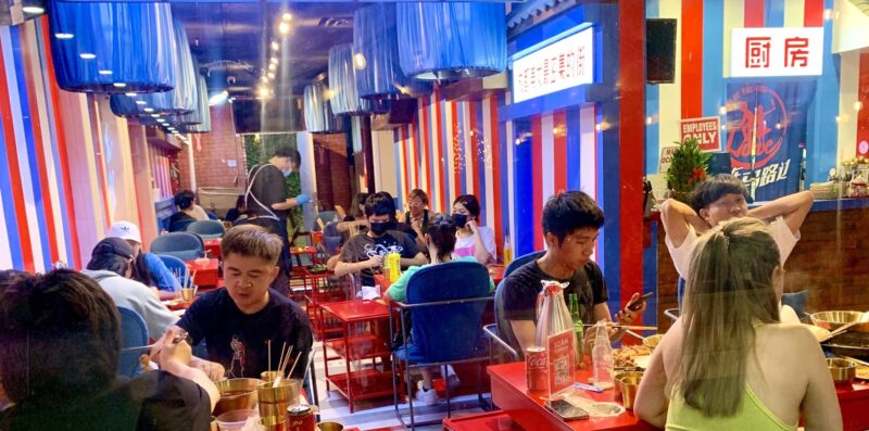 「爱在马路边」串串火锅餐厅轻松怀旧的环境,清一色宝石蓝的桌椅,街边的红、绿、黄灯交通号志,仿佛穿越40年前成都某个巷子角落,富有年代感。该店火锅串串不仅美味可口,盆菜小吃种类多,随意品尝,可一饱口福。不少食客也喜欢这里的怀旧情调,朋友解绍朋友来吃,共享美味火锅,度过难忘时光。