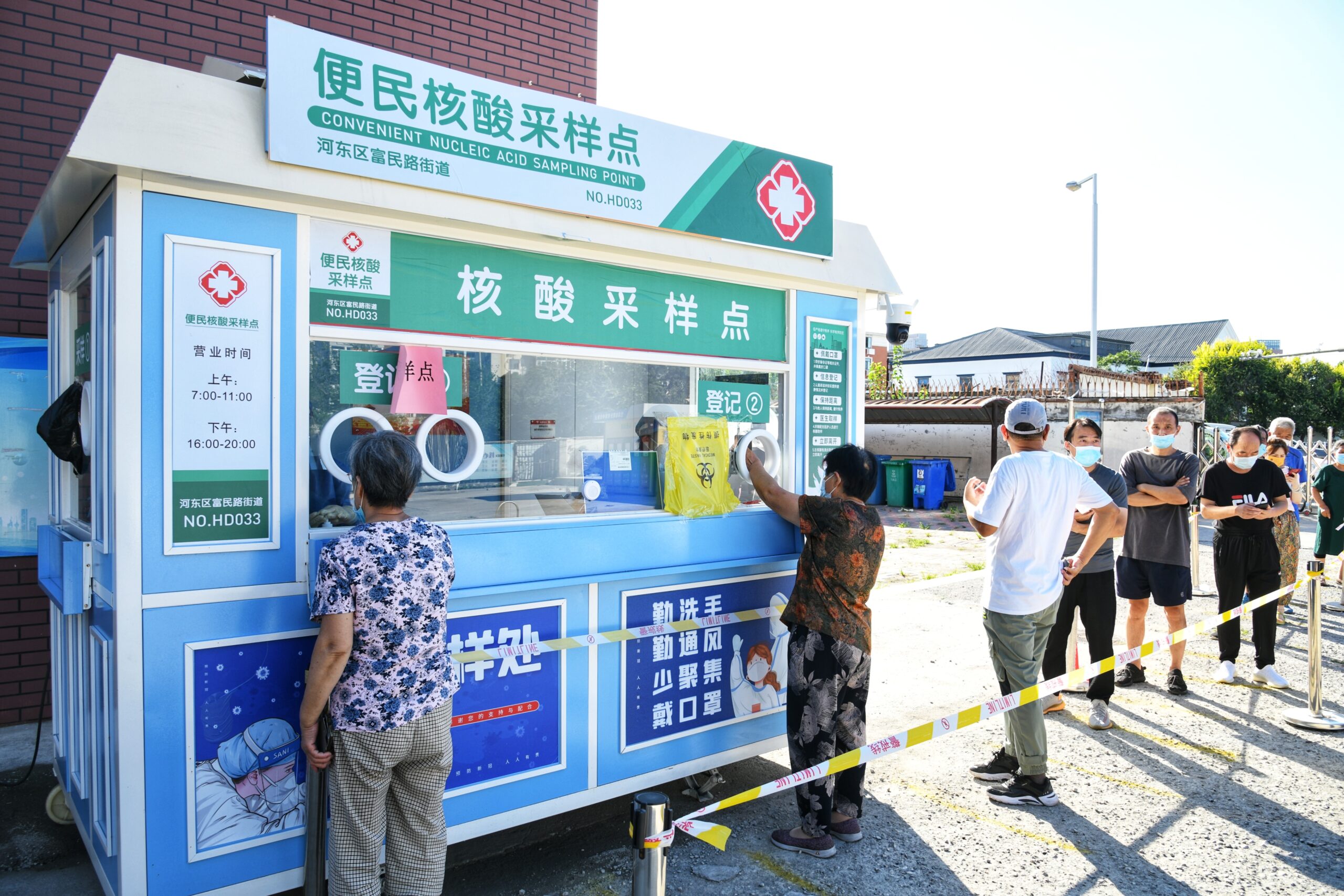 8月22日,市民在天津市河东区富民路街道便民核酸采样点进行核酸检测。当日,天津启动常态化核酸检测服务,依托设立在各个街道的便民核酸采样点,以每7日作为一次常态化核酸检测的周期,为全市居民和在津流动人员免费提供一次核酸检测服务。