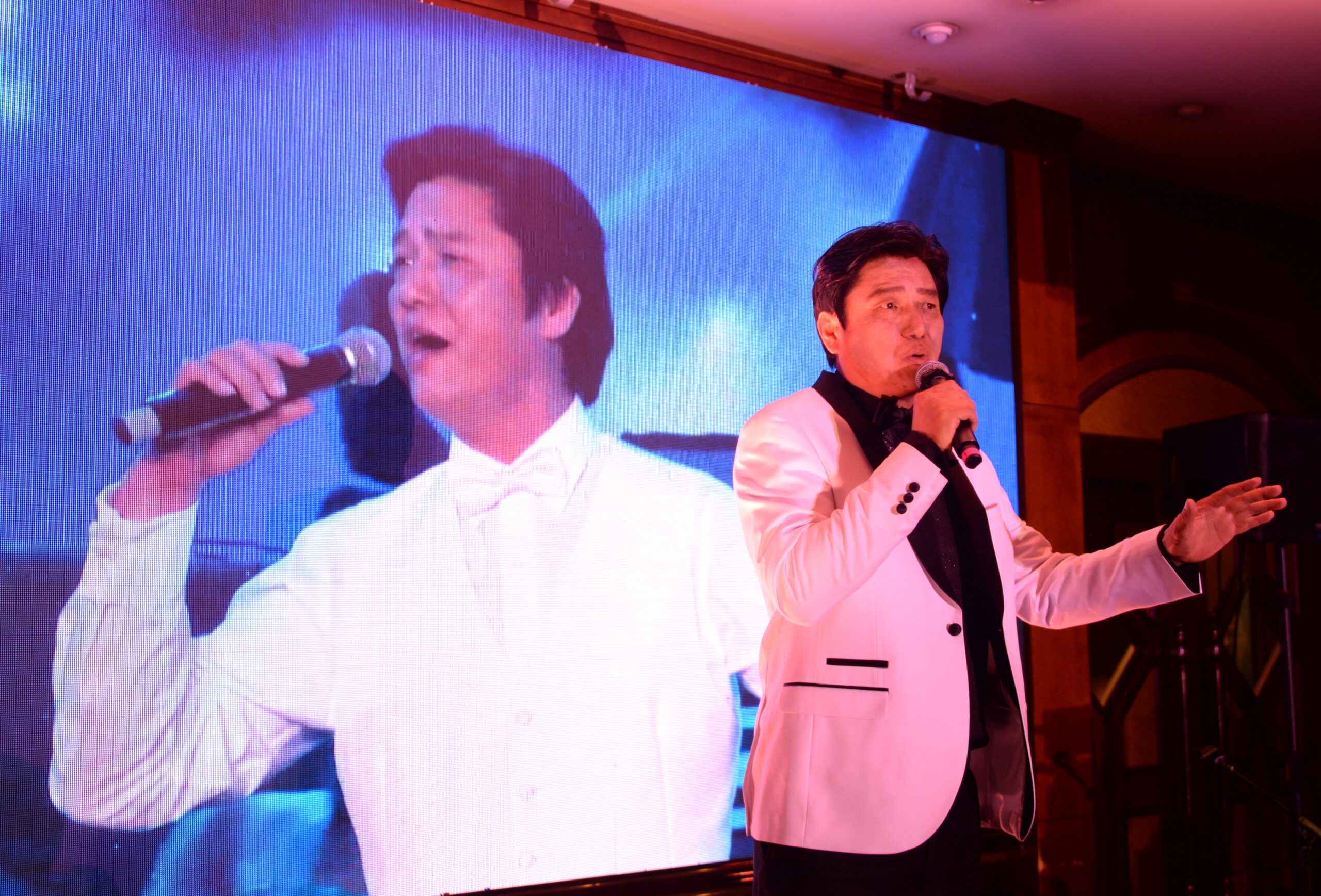 城市新闻8月25日罗兰岗报道,洛杉矶华人社区著名男高音歌唱家彭澎感恩演唱会罗兰岗凯悦大酒楼举行,他演唱了 《等待》、《故乡的云》、《在哪桃花盛开的地方》、《我的太阳》、《父亲》、 《 贝加尔湖畔》等歌曲,歌喉嘹亮,唱功不凡,引来阵阵掌声,拉开加州华人日系列活动序幕。