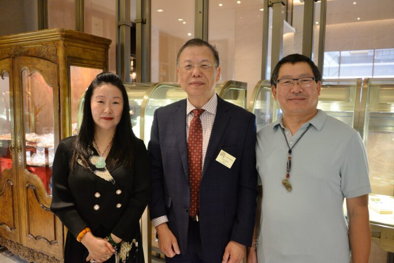 荣宝珠古董艺术品店老板蒋莉莉(Lily Jiang)、崔杰与圣盖博市长丁言愉(中)
