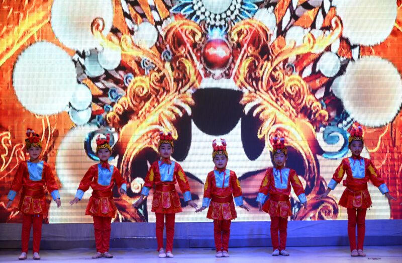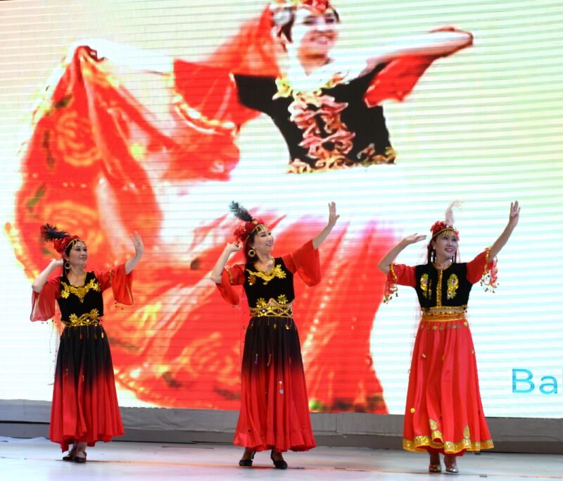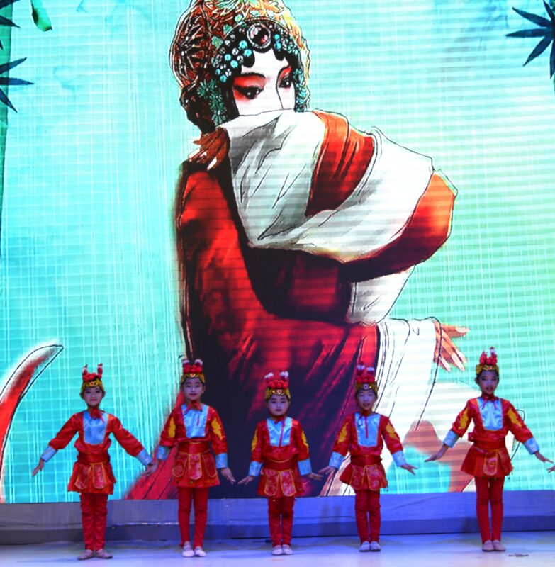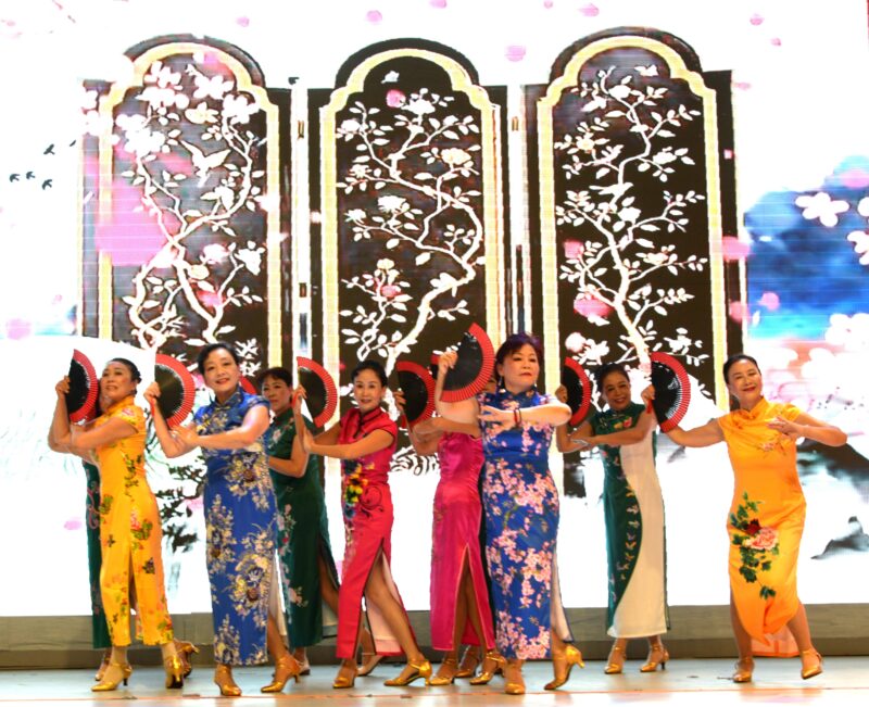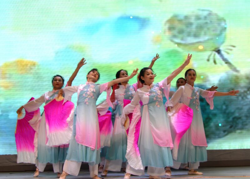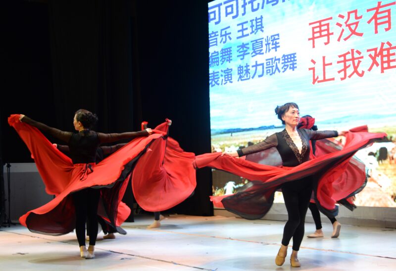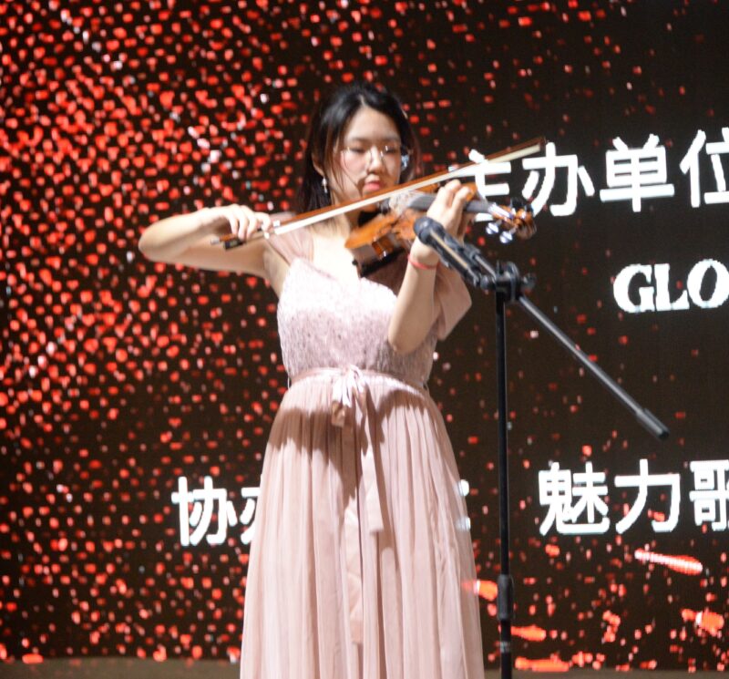 奇乐舞团表演舞蹈《旗袍美人》,丽丽队表演新疆舞蹈《掀起你的盖头来》让观众沉浸在美的旋律中。阳光学院学生董懿琳长笛独奏《凉凉》,郑吴越小提琴演奏 《CAVATINA 》,笛声、小提琴声交汇互融,让观众享受美妙乐曲。奇乐舞团LANNY独舞《小鸡小鸡》,好莱坞电影学院林玲、亚男、笑涵、雯雯表演舞蹈《青花瓷》,魅力舞团古典舞《可可托海的牧羊人》,舞姿轻盈,活泼雅典。