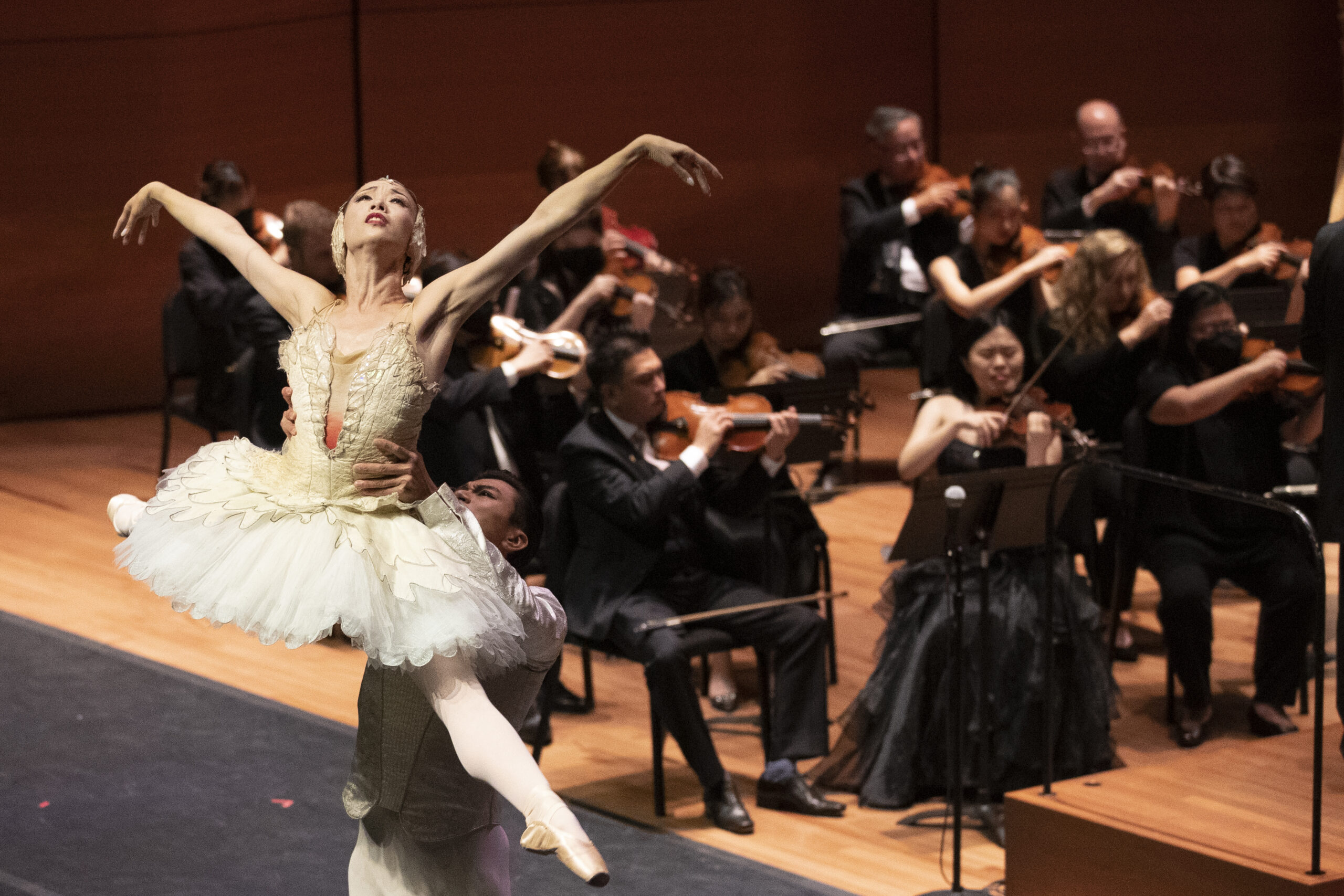 当地时间9月10日中秋节,由美国纽约北京同乡会、阿尔弗雷德大学共同主办的《金秋之夜》音乐会在林肯中心爱丽丝·塔莉音乐厅举行,纽约城市芭蕾舞团首席演员陈镇威与美国芭蕾舞剧院独舞演员方仲静表演芭蕾舞剧《天鹅湖》片段,引得观众鼓掌称赞。