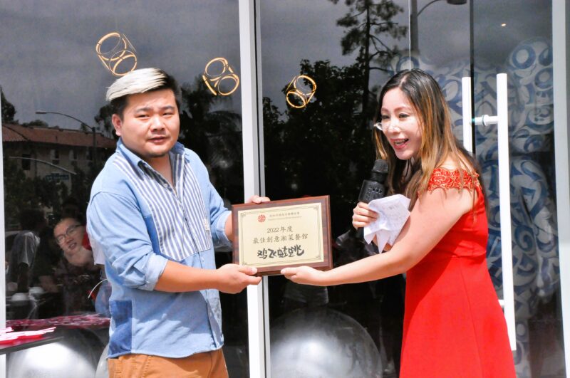 核桃市前市长苏王秀兰(Mary Su)祝贺开业,并代表加州众议员陈立德颁发贺状,她表示,「鸡飞蛙跳」是由几个年轻人创立,在疫情期间创业非常不易,他们的菜品都很有特色,希望大家都能到这边来品尝好吃的长沙菜,相信你们品尝一定会满意,这样不仅可以支持年轻人创业,又可以品尝到美味佳食。