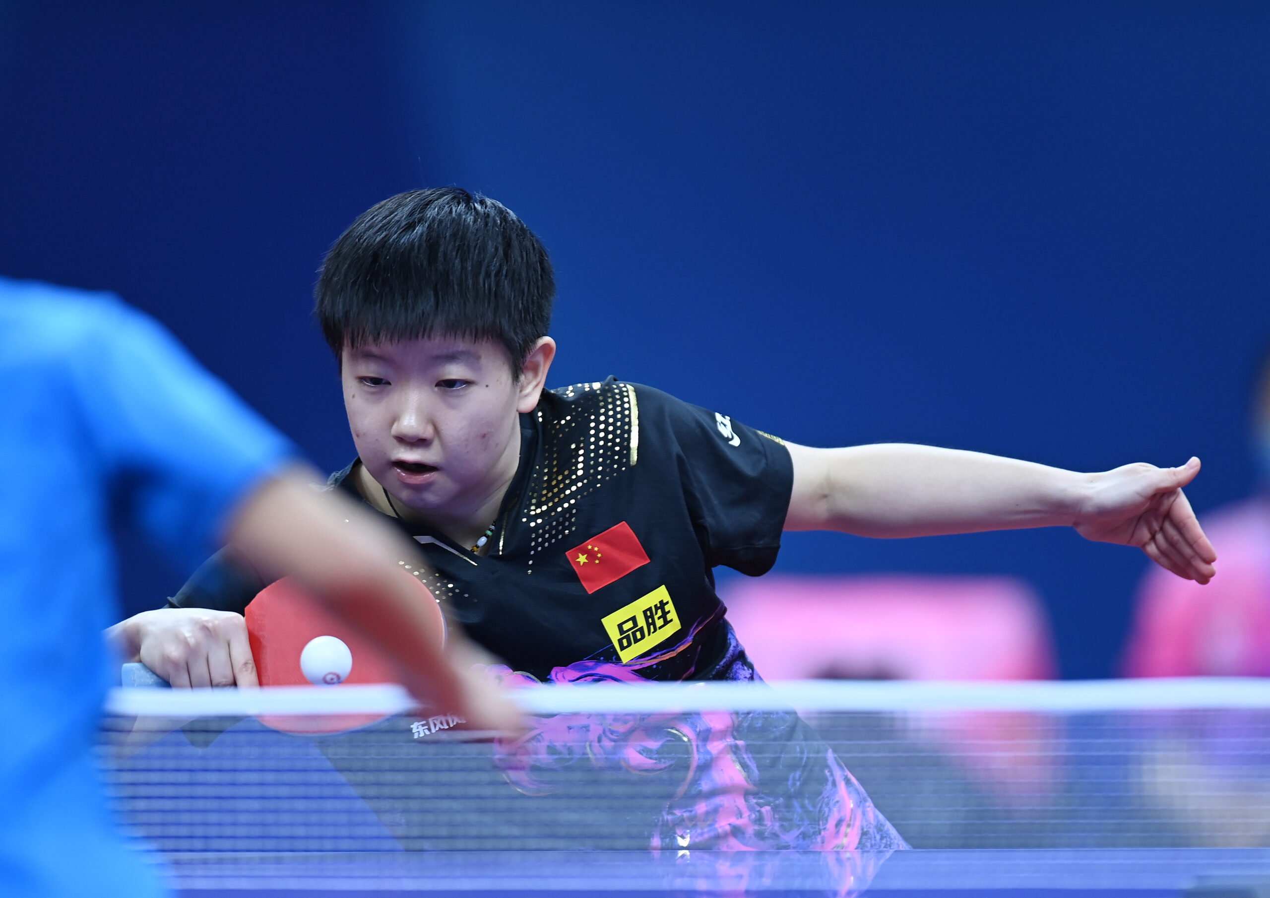 10月4日,四川成都,2022年第56届国际乒联世界乒乓球团体锦标赛(决赛)·成都迎来第五个比赛日。中国女团3:0胜马来西亚。图为中国女子乒乓球队队员孙颖莎在比赛中。